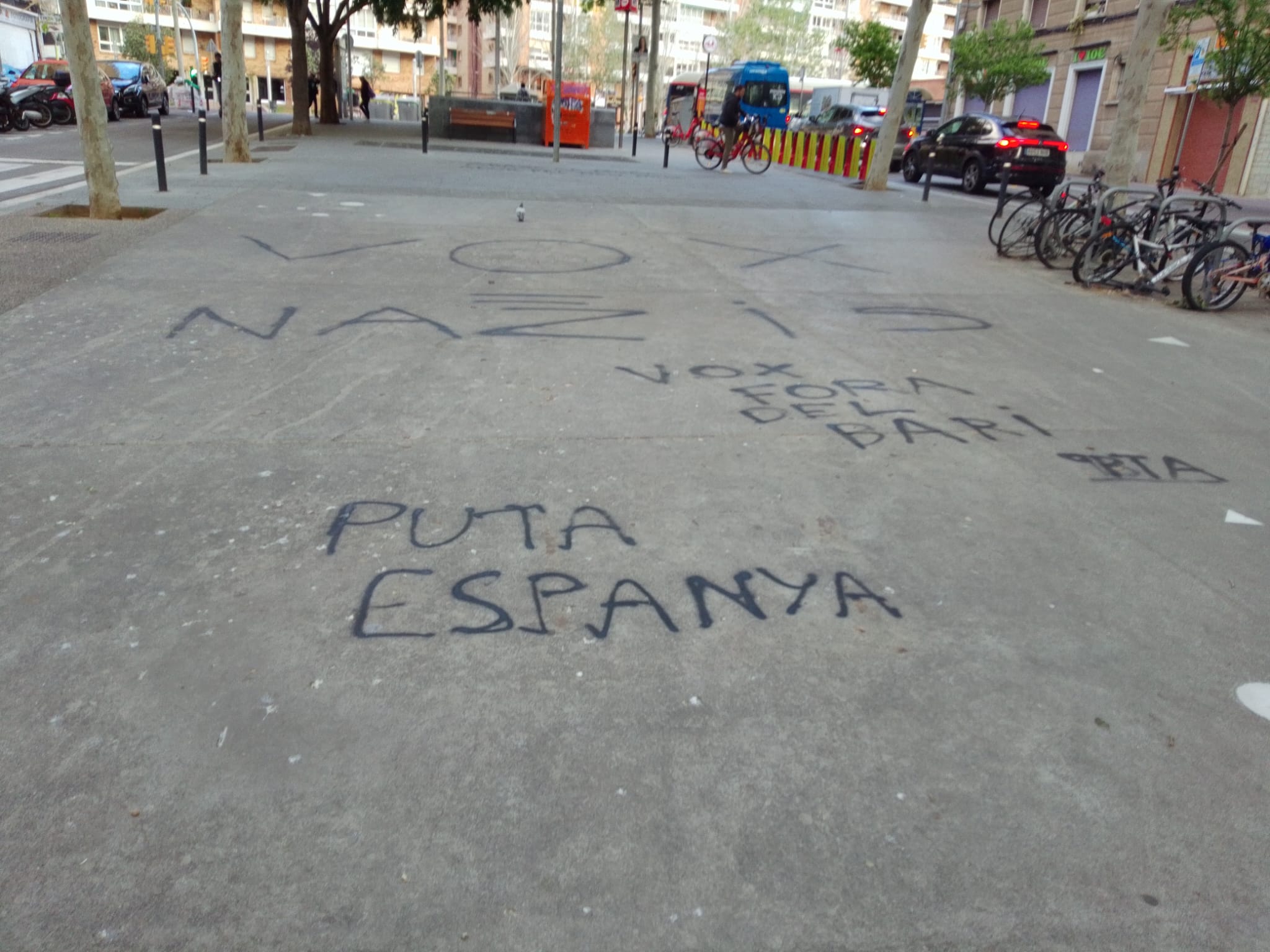 Mediante un cordón policial, los Mossos d'Esquadra han tenido que intervenir para contener a estos ultras para que no llegaran hasta el acto de partido. El recinto aparecía ya repleto de pintadas amenazantes y durante el mitin se escuchaban gritos de los rebeldes dirigidos a Santiago Abascal: "Nazi muerto, abono pa mi huerto"; "Santi, pardillo, tu boca en el bordillo" o "Nous Barris será la tumba del fascismo".