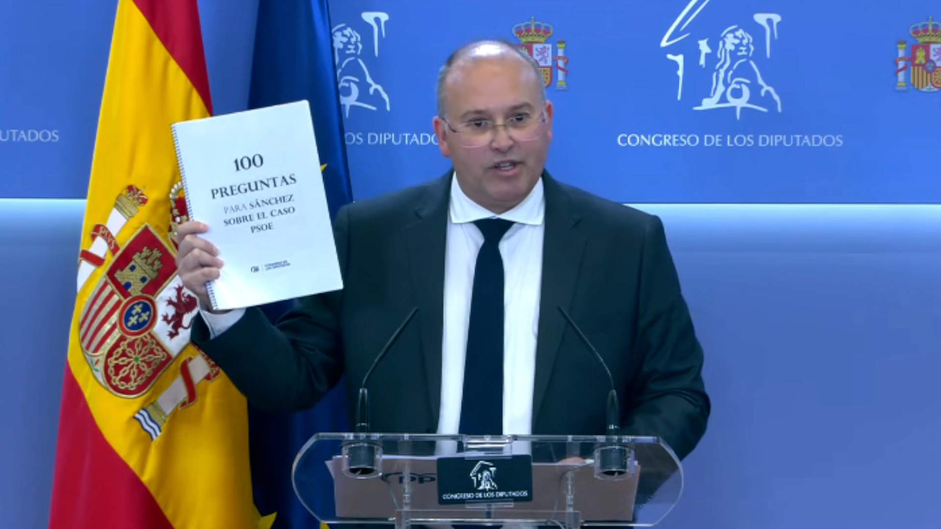 Miguel Tellado, anunció este lunes que su partido ha elaborado un listado de 100 preguntas sobre el llamado 'caso Koldo' y las incógnitas sobre las actividades de la esposa de Pedro Sánchez que remitirán al PSOE para que el jefe del Ejecutivo las conteste este miércoles en su comparecencia en el Pleno en la Cámara Baja.