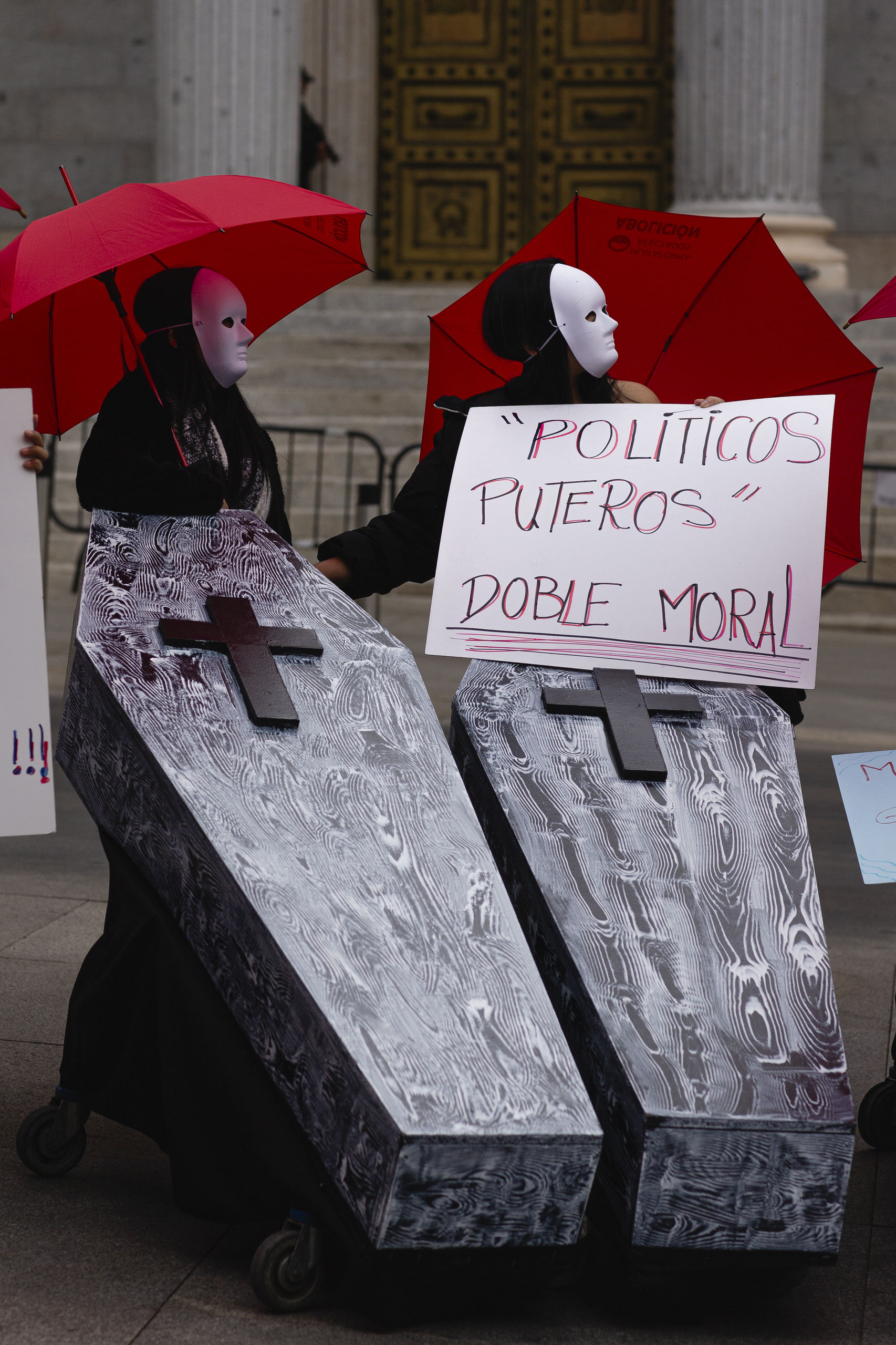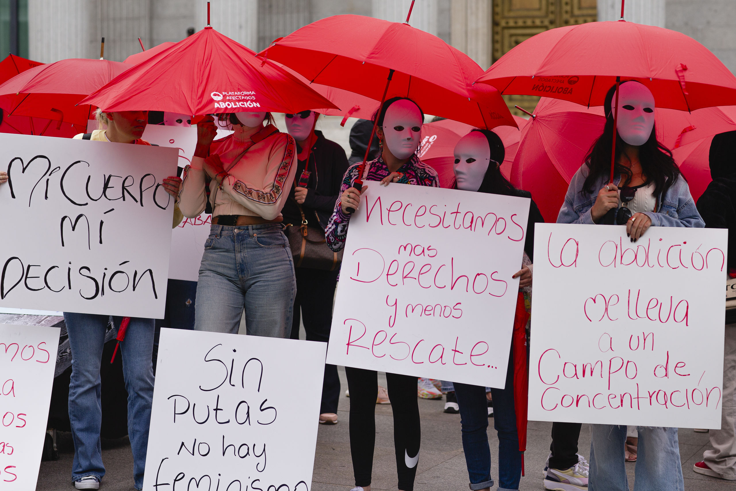 Alrededor de una treintena de trabajadoras sexuales han protestado este martes frente al Congreso para protestar contra la proposición del PSOE para abolir la prostitución. Aseguran que es una propuesta "criminalizadora" y llevará a este colectivo a la invisibilidad, la precariedad y la clandestinidad.