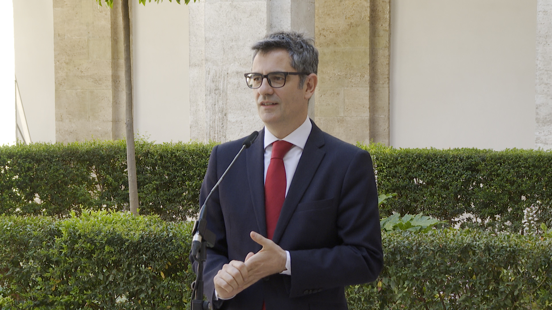 El ministro de Presidencia, Justicia y Relaciones con las Cortes, ha afirmado que no puede "sorprender" que al presidente del PP, Alberto Núñez Feijóo, le parezca bien que el Partido Popular Europeo pacte con la ultraderecha europea.