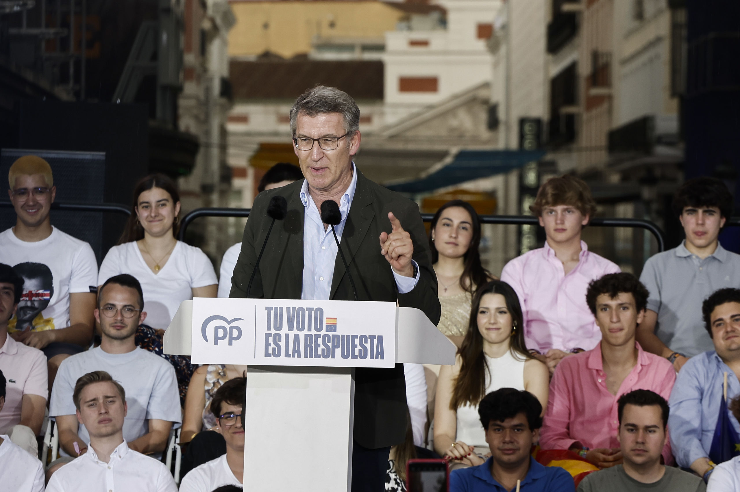 El PP empuja en esta recta final de campaña para movilizar al electorado, incluso contra las inclemencias del tiempo. Desde la céntrica plaza de Callao, y bajo una intensa tormenta de verano, Alberto Núñez Feijóo ha pedido un último esfuerzo para acudir a votar el próximo domingo y trasladar a las urnas el malestar contra Pedro Sánchez.