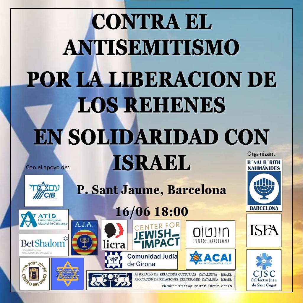 La cita es este domingo a las seis de la tarde en la plaza de San Jaime de Barcelona con el lema "contra el antisemitismo, por la libertad de los rehenes, en solidaridad con Israel". Estarán representadas las principales organizaciones de la comunidad judía en Cataluña como "Israel-Spain Forum Alliance" (ISFA), la Asociación Catalana de Amigos de Israel (ACAI), Bet Shalom, Comunidad Judía de Gerona, entre otras.
