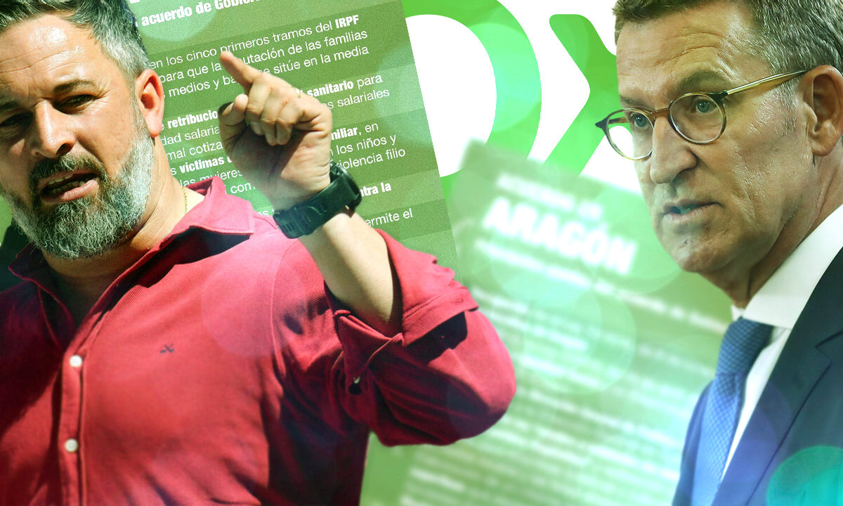 En el comunicado remitido en la noche del miércoles, sin embargo, Vox ya no hablaba de lo firmado en dichos documentos -accesibles a cualquiera que haga una rápida búsqueda en Internet-, sino a las supuestas "conversaciones internas mantenidas en las últimas semanas". El cambio de discurso no es baladí, sino que responde a una realidad fácilmente constatable: en ninguno de los cinco acuerdos rubricados por PP y Vox se menciona el asunto que hoy pone en jaque la gobernabilidad de hasta cinco comunidades autónomas.