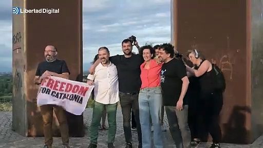 La secretaria general de ERC, Marta Rovira; el diputado de ERC en el Parlamento de Cataluña, Ruben Wagensberg; el vicepresidente de Òmnium Cultural, Oleguer Serra; el periodista de 'La Directa', Jesús Rodríguez, y el activista Josep Campmajó que han sido recibidos en Salses (Francia) este viernes antes de cruzar la frontera al archivarse la causa de 'Tsunami Democràtic' del proceso independentista de Cataluña.