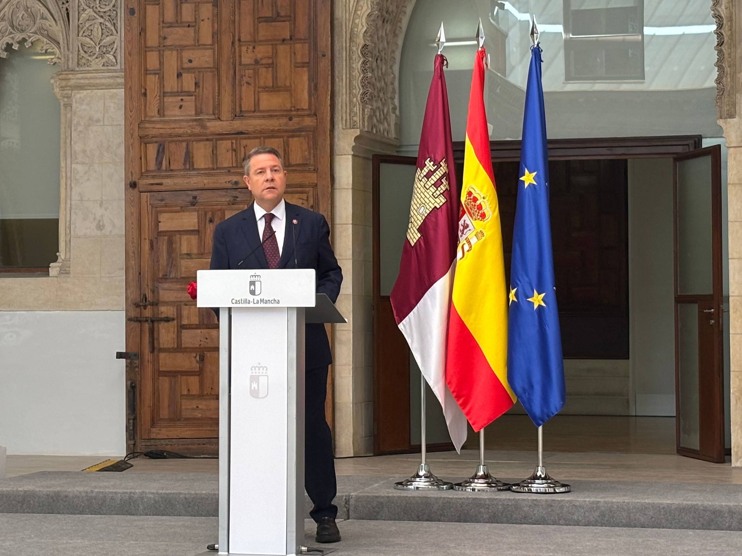 La declaración se ha producido este miércoles poco antes de las once de la mañana: el presidente de Castilla-La Mancha ha hablado durante unos minutos y no ha aceptado preguntas de los periodistas.
