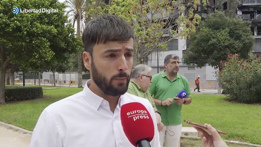 Comienzan los trabajos de desescombro en los dos bloques de viviendas de la calle Rafael Alberti número 2 de Valencia, en el barrio de Campanar, que resultaron afectados por el fuego que los destruyó por completo.