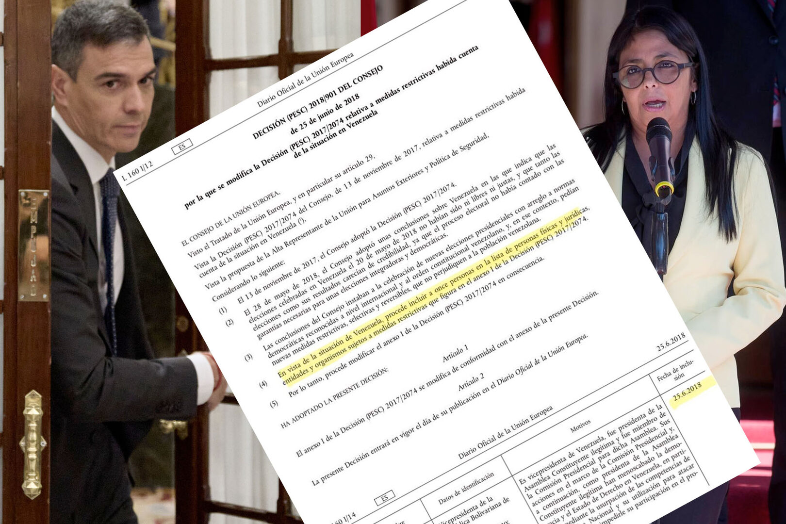 El 25 de junio de 2018 él ya era presidente del Gobierno, Borrell era su ministro y Delcy era sancionada.