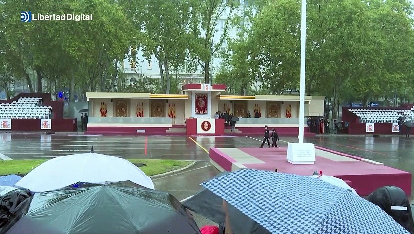 La lluvia ha obligado a cancelar la exhibición aérea enmarcada en el desfile del 12 octubre, según ha informado el Ministerio de Defensa. También se ha suspendido el salto de la Patrulla Acrobática de Paracaidismo del Ejército del Aire y del Espacio (PAPEA) y también la pasada de la Patrulla Águila, tal y como han confirmado desde la cartera encabezada por Margarita Robles.