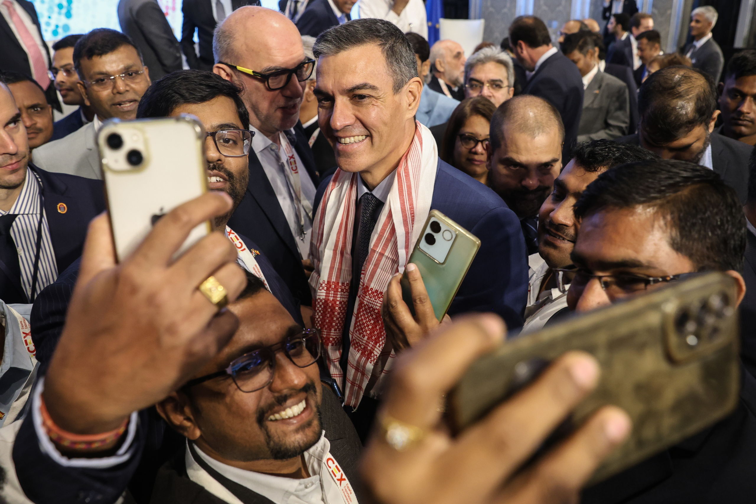 Pedro Sánchez llegó a la India con su foto con el comisionista Víctor de Aldama, tomada en febrero de 2019, en las portadas y se va con los titulares de la imputación de dos delitos más a su mujer. En una comparecencia desde Bombay, el presidente del Gobierno ha restado importancia al nuevo auto del juez Juan Carlos Peinado pese a que confirma que investiga a Begoña Gómez por dos nuevos delitos (apropiación indebida e intrusismo profesional) y que se suman a los de tráfico de influencias y corrupción en el sector privado.
