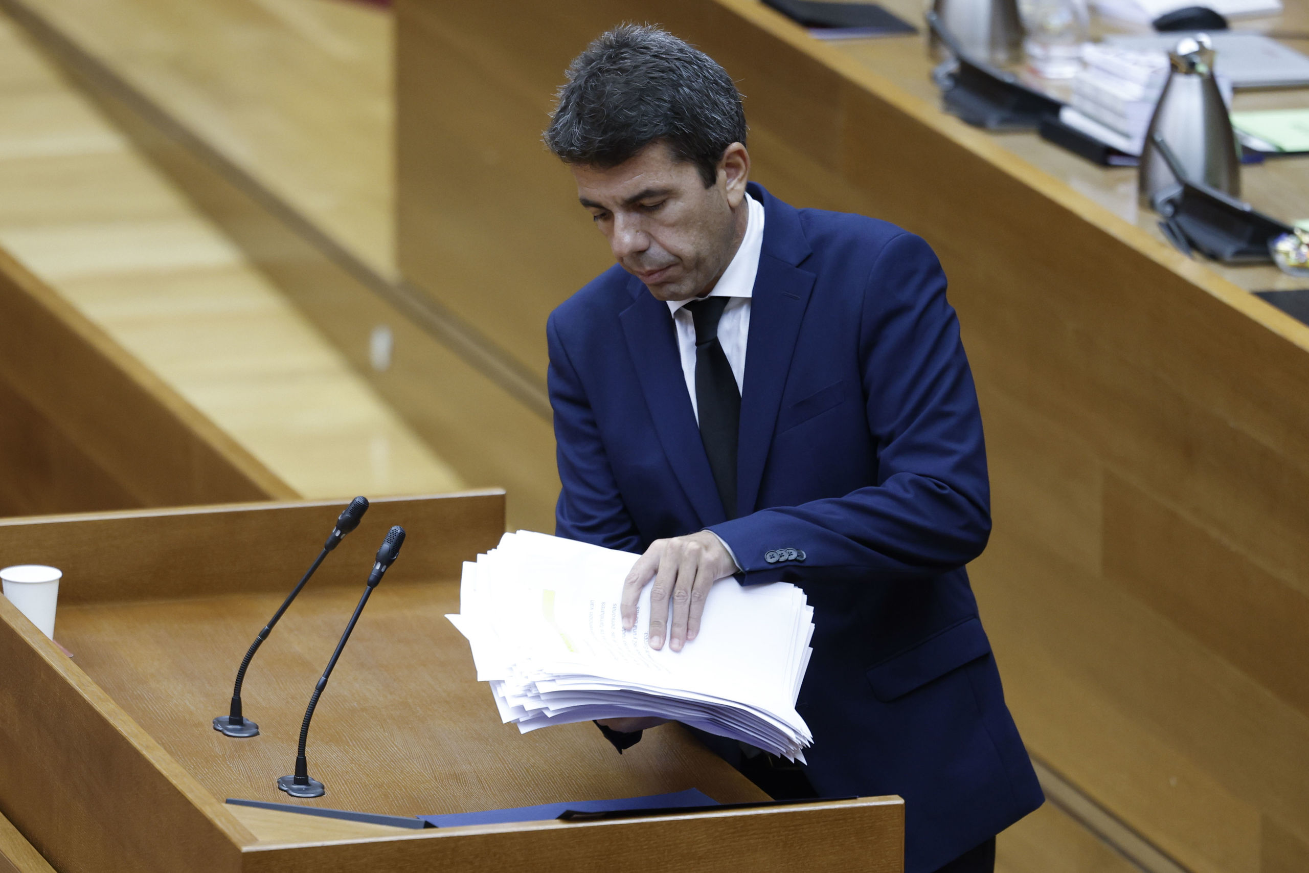 El presidente valenciano, Carlos Mazón, ha comparecido durante dos horas y media en las Cortes valencianas, donde ha repasado toda la cronología del fatídico 29 de octubre, en un intento por justificar posibles errores de su gobierno, al tiempo que ha señalado de manera permanente a la Confederación Hidrográfica del Júcar, dependiente de la ministra Teresa Ribera, además de la ineficacia de los protocolos.