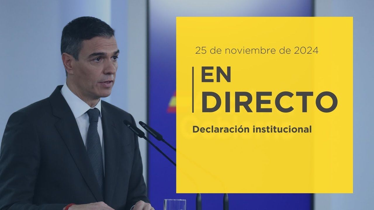 El presidente del Gobierno Pedro Sánchez realiza una declaración institucional desde el Palacio de la Moncloa.