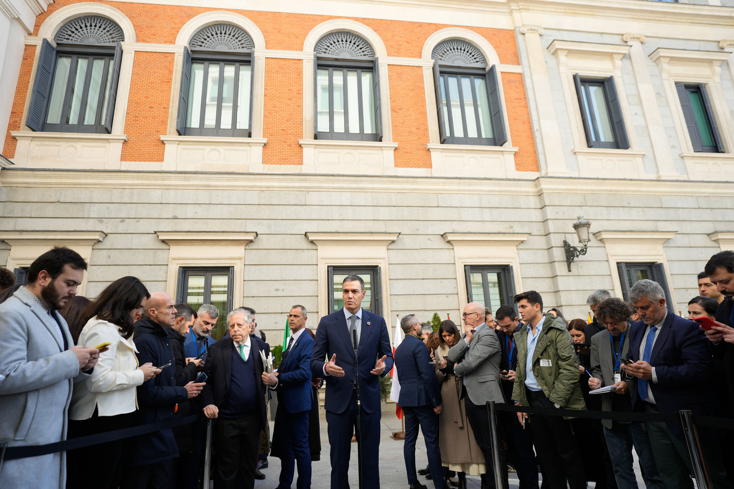 El presidente del Gobierno, que ha rechazado responder a preguntas, ha concretado un poco los cambios que se deberían hacer en la Carta Magna. Pedro Sánchez ha defendido que "la mejor manera de reivindicar nuestra Constitución es cumplirla" y que también hay que "reformar algunos de sus artículos" para "blindar derechos ante un avance reaccionario".