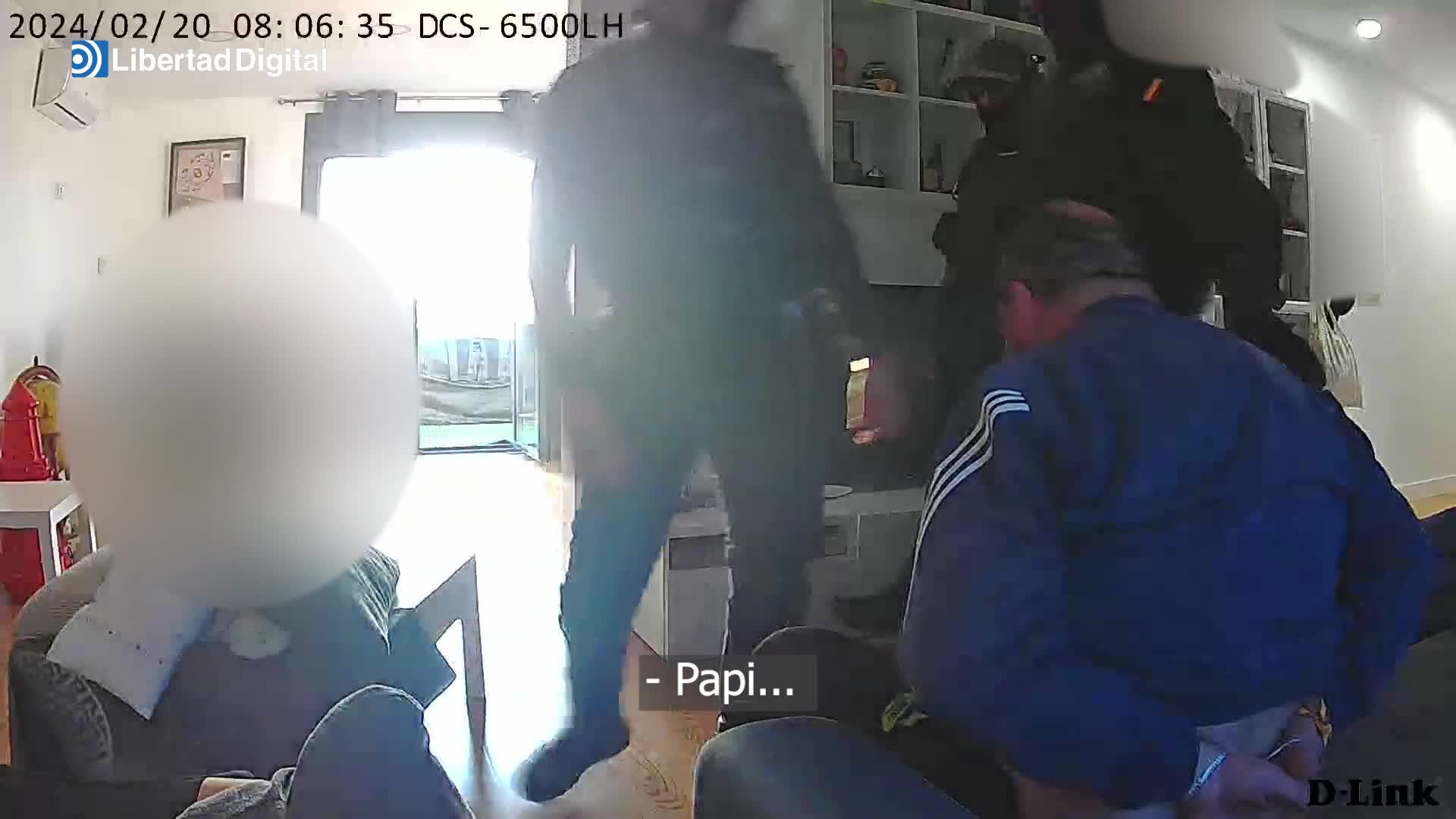 El vídeo de esa entrada muestra como los agentes irrumpen a las 08.02 horas de la mañana del 20 de febrero de 2024 en la casa por la puerta principal y al grito de "al suelo, Guardia Civil". En esos primeros instantes se encuentran frente a frente con la pareja del investigado quien rápidamente levanta los brazos, se tumba en el suelo y avisa a los agentes de que hay una menor de edad en el domicilio.