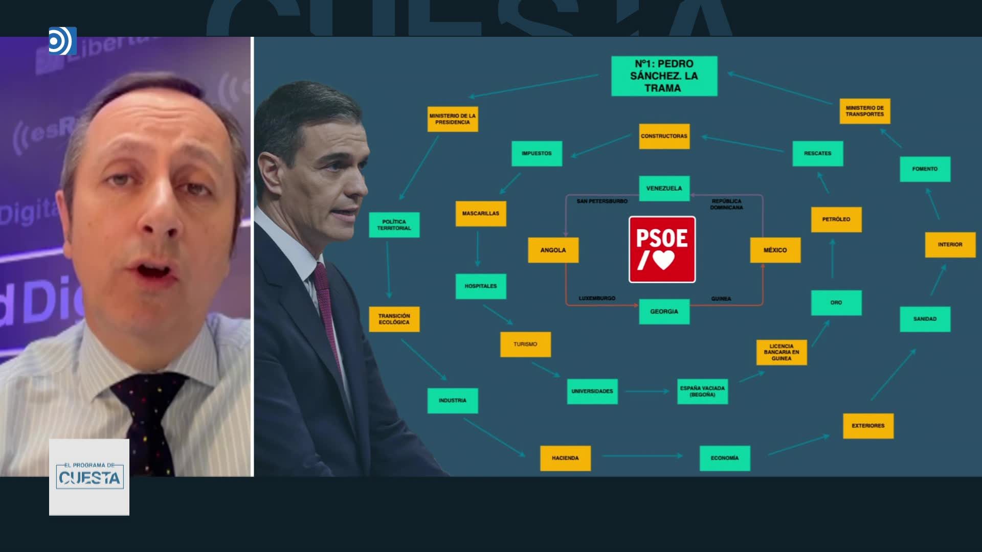 Carlos Cuesta desvela todas las ramas de la trama de corrupción del PSOE en las que estaría implicado Sánchez.