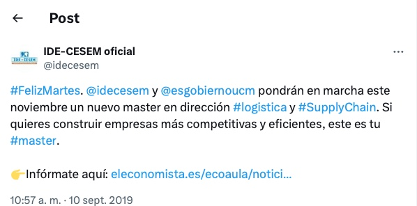 Esther Álvarez venía de trabajar en una escuela de negocios denominada IDE-CESEM, la misma en la que estaba su hermana Cristina antes de que la fichara Begoña para la Presidencia del Gobierno. Y las relaciones con la Complutense se intensificaron ya antes de que acabara también Esther en relación directa con los negocios de la mujer de Sánchez. El 10 de septiembre de 2019, ya con el PSOE en el poder, su escuela de negocios celebró públicamente y en redes sociales que el "@idecesem y @esgobiernoucm pondrán en marcha este noviembre un nuevo master en dirección #logística y #SupplyChain. Si quieres construir empresas más competitivas y eficientes, este es tu #master".