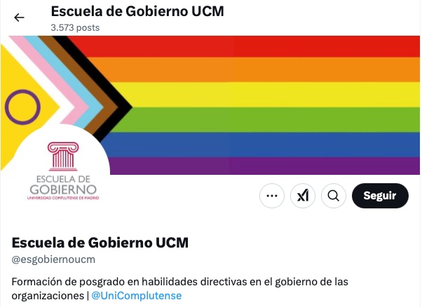 Esther acabó en la cátedra -y en su "claustro de expertos" de Begoña Gómez, que, a su vez, depende de una división de la Complutense denominada Escuela de Gobierno UCM, un área cuyo logo en redes incluye la bandera LGTB y asegura que se dedica a la "formación de posgrado en habilidades directivas en el gobierno de las organizaciones".