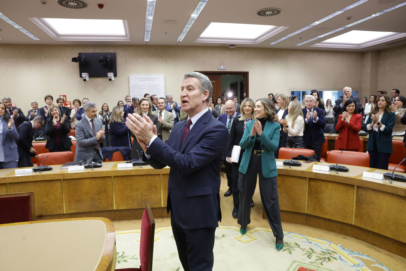Alberto Núñez Feijóo reunió ayer a sus diputados y senadores en la Sala Constitucional del Congreso para encarar el nuevo período de sesiones, marcado por la intensa agenda judicial del Gobierno. Después de un discurso centrado en criticar al fiscal general del Estado, y a Pedro Sánchez por respaldarle, el presidente del Partido Popular pidió a los suyos, a puerta cerrada, movilizarse y estar activos, a pesar de que no hay citas electorales a la vista, aunque no pueden descartarse por completo dada la falta de Presupuestos Generales del Estado.