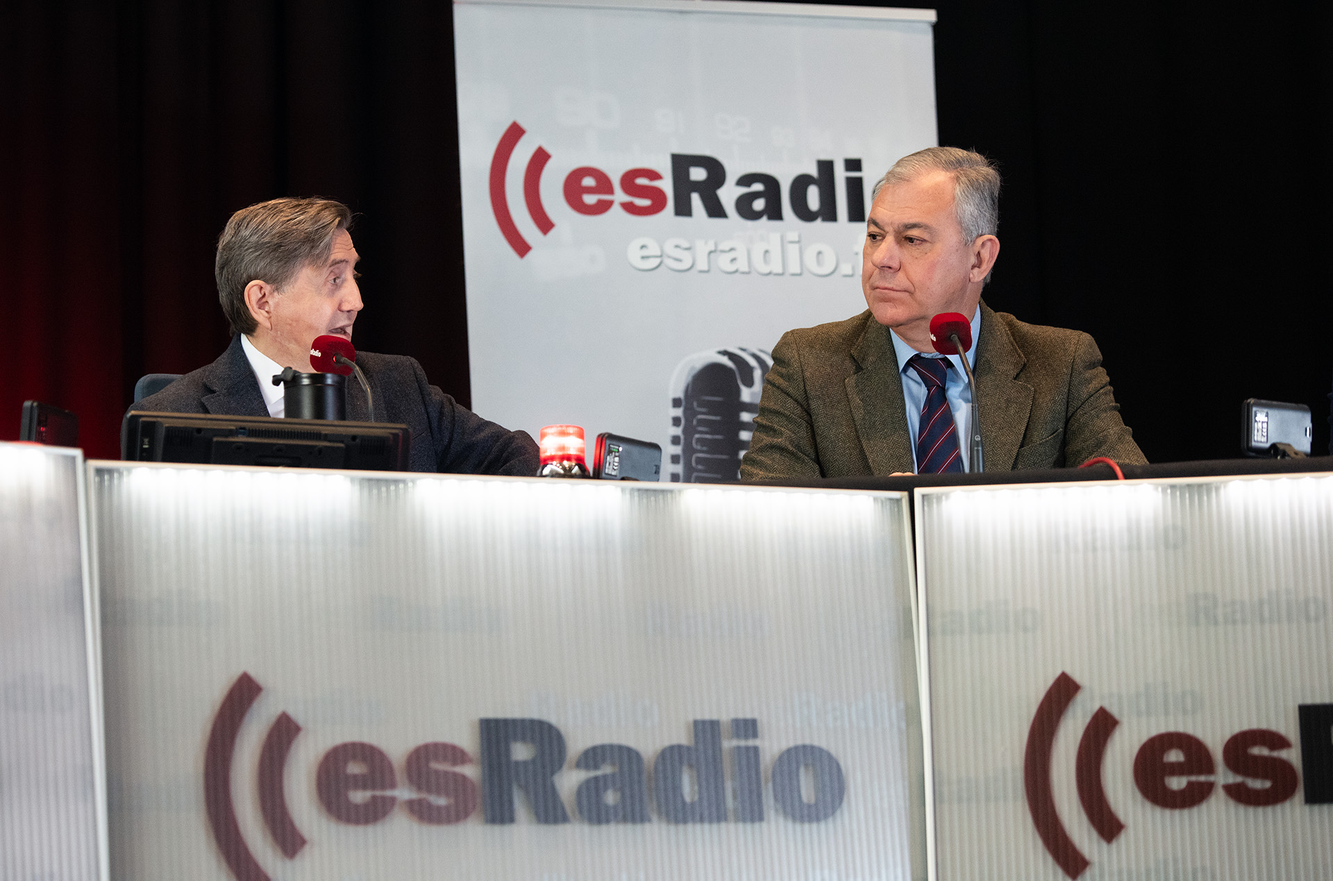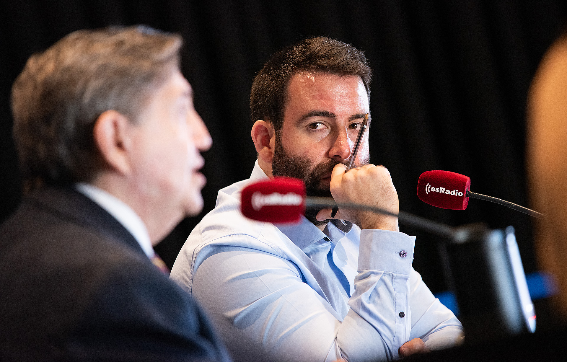 Daniel Muñoz escucha con atención a Federico Jiménez Losantos durante el especial 'Es la Mañana de Federico' desde Sevilla.