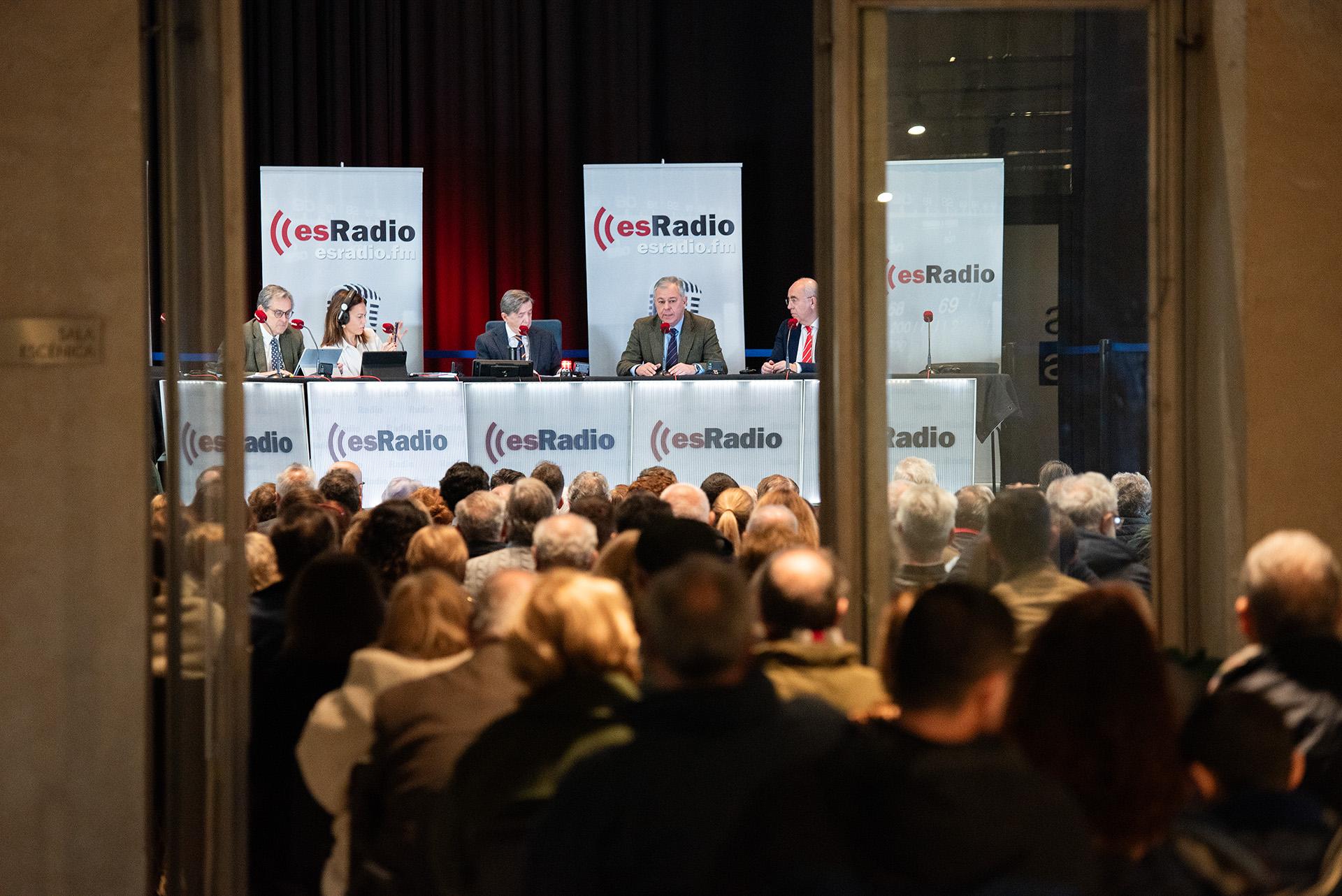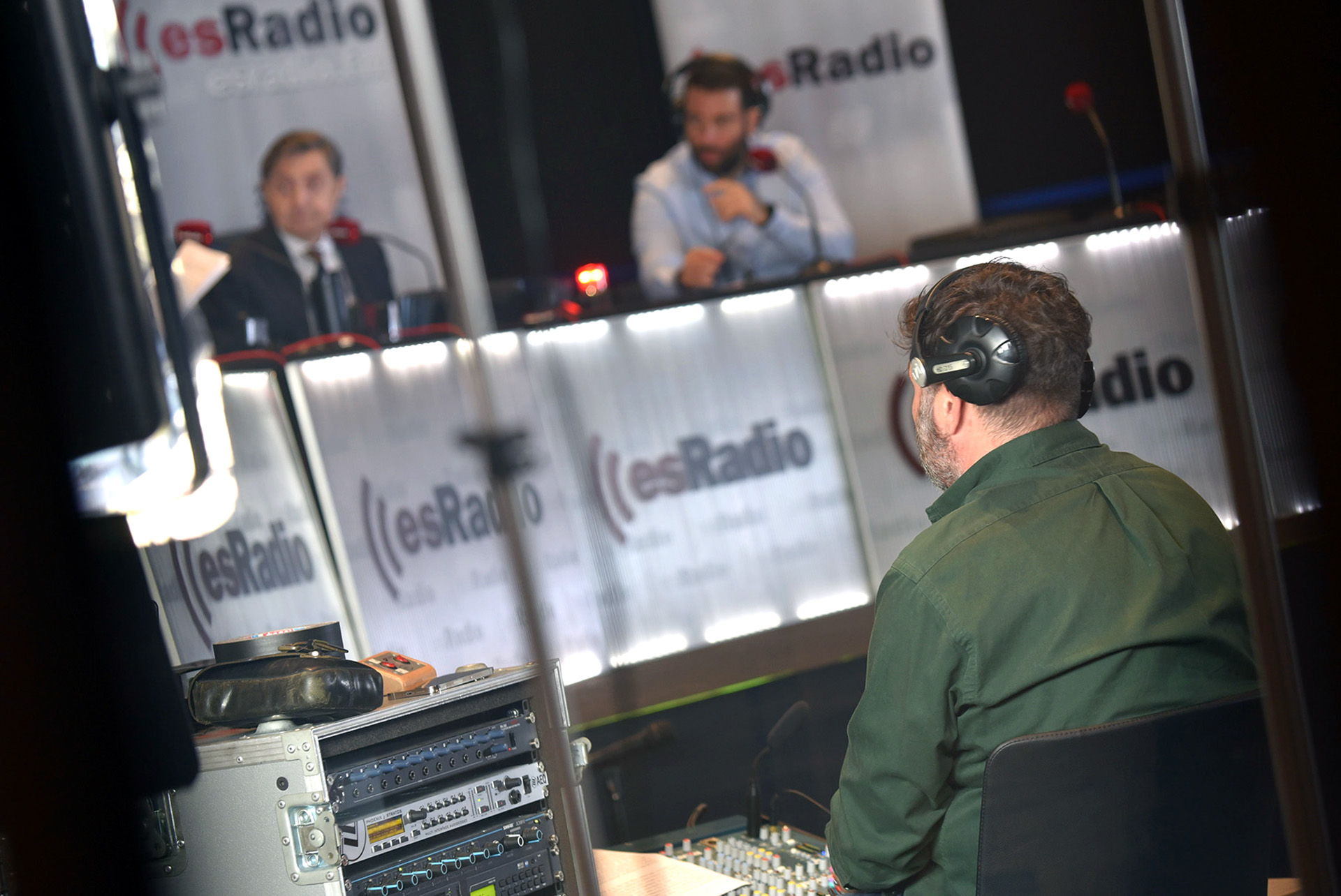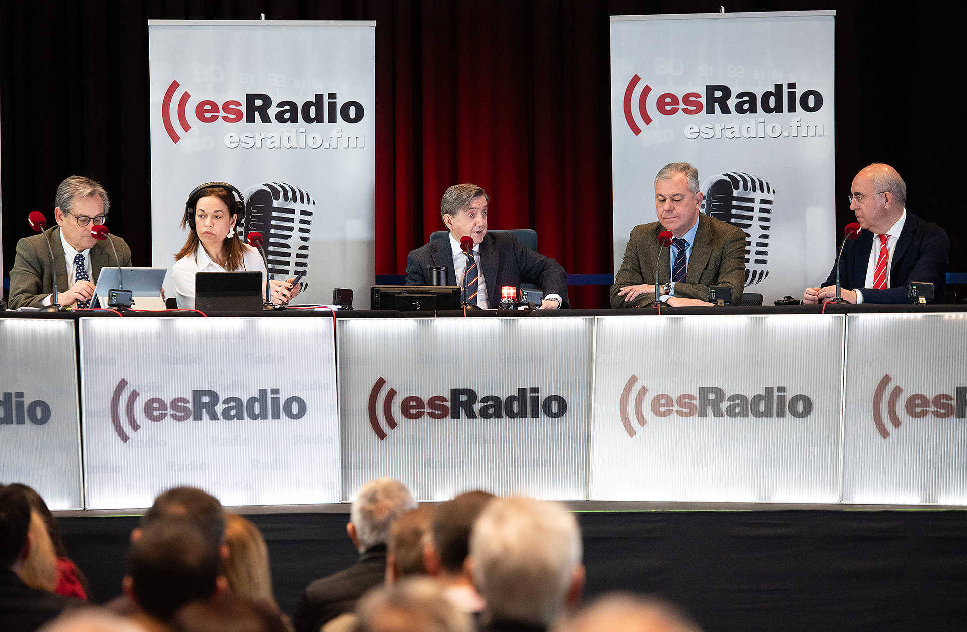 La mesa de la tertulia política y el alcalde de Sevilla José Luis Sanz Ruiz, quien ha acudido para ser entrevistado por Federico Jiménez Losantos.