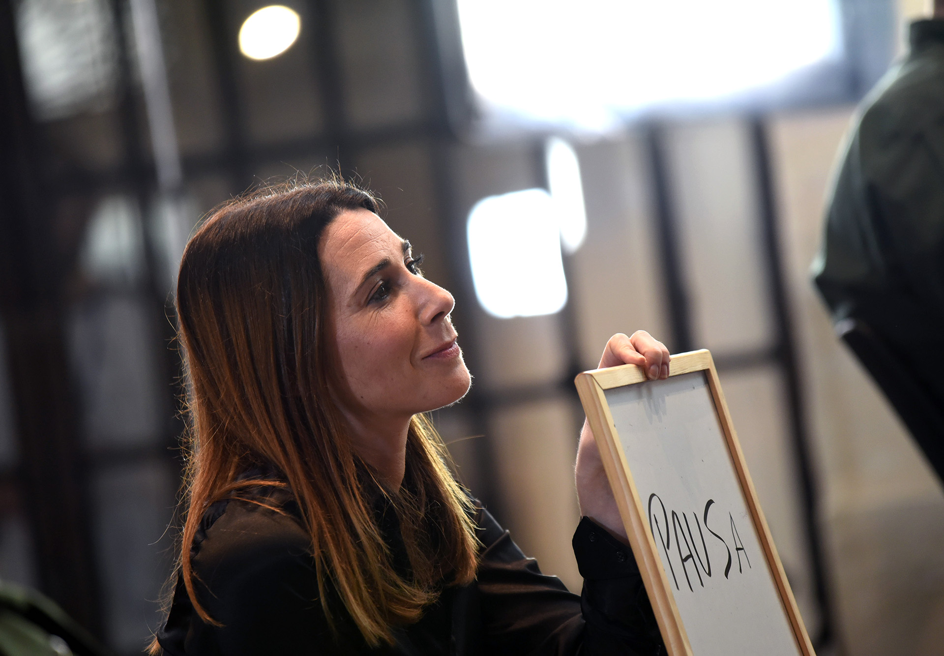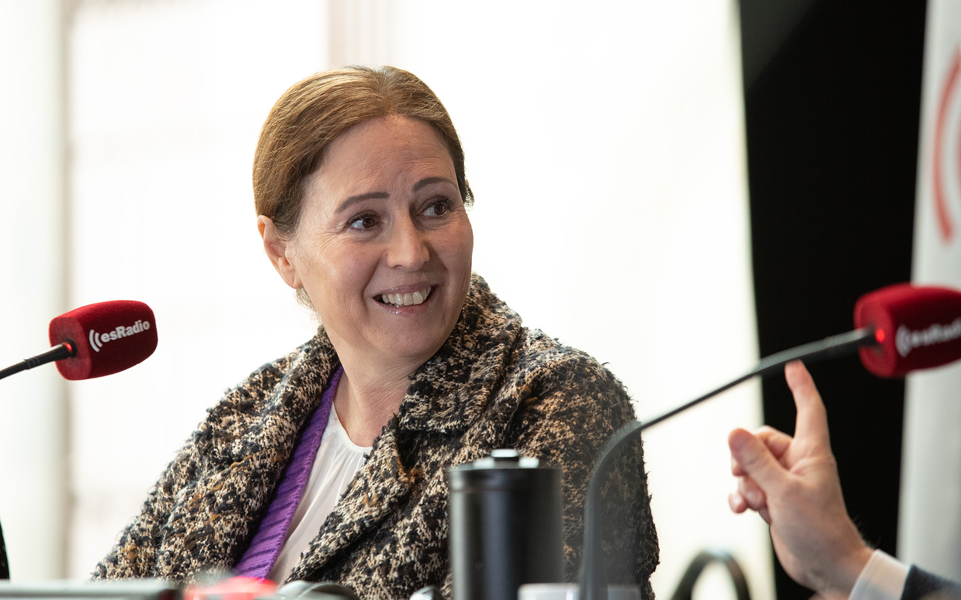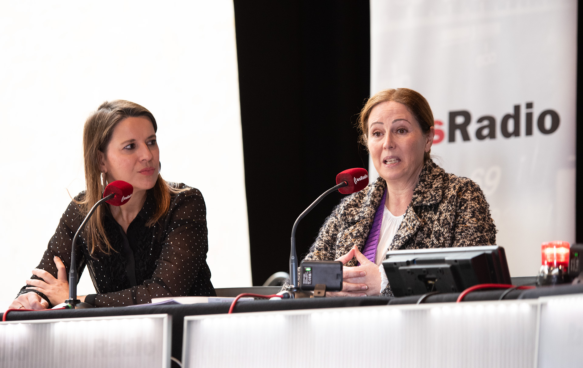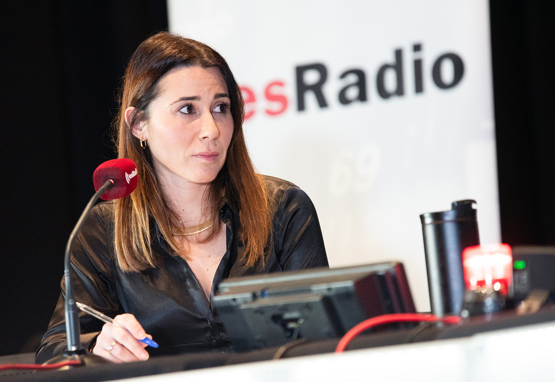 Silvia Riveiro, atenta a las palabras de Federico, en la parte informativa durante el programa especial desde Sevilla.