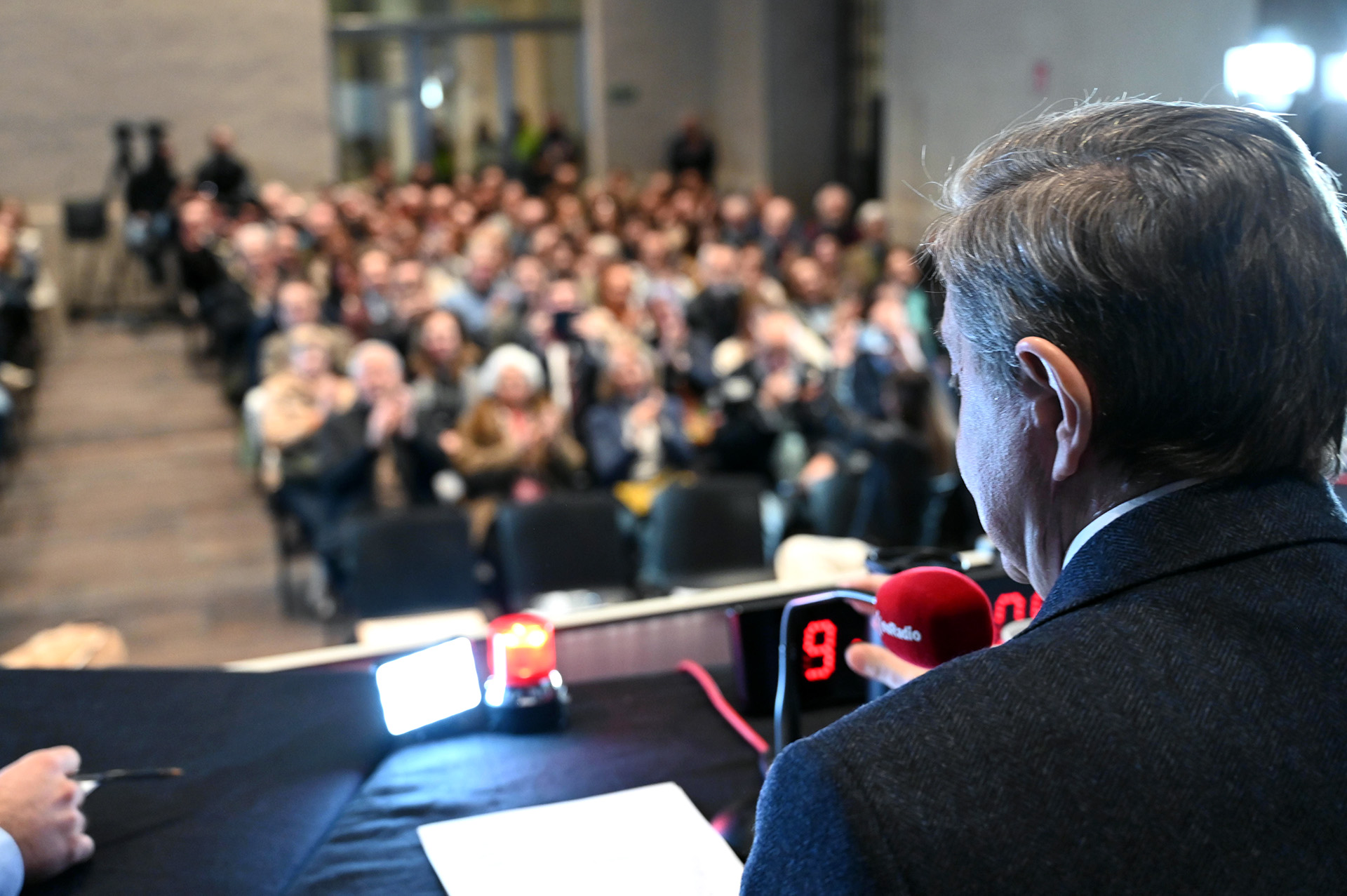 Paco Marhuenda es recibido con aplausos al hacer aparición para la tertulia política.