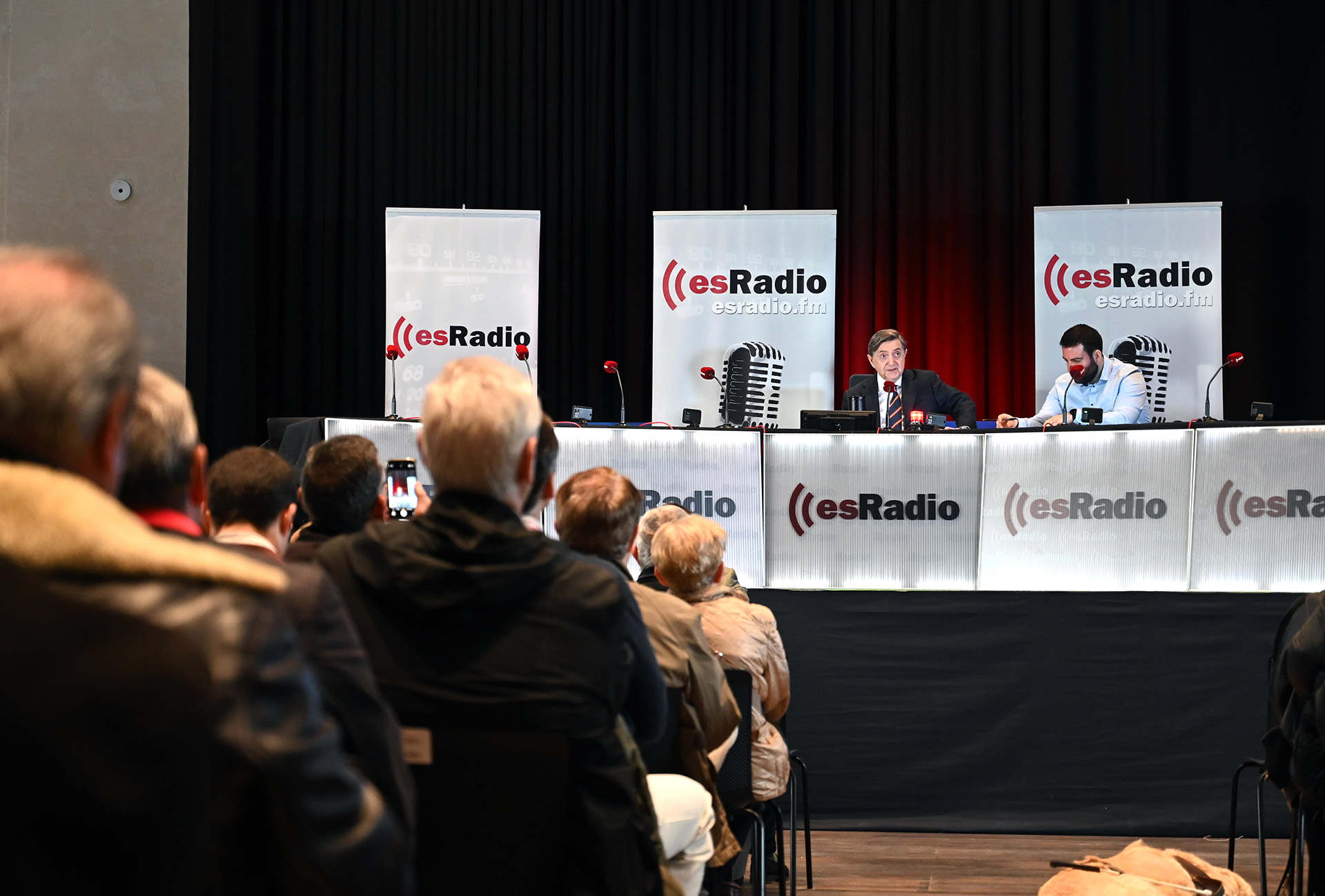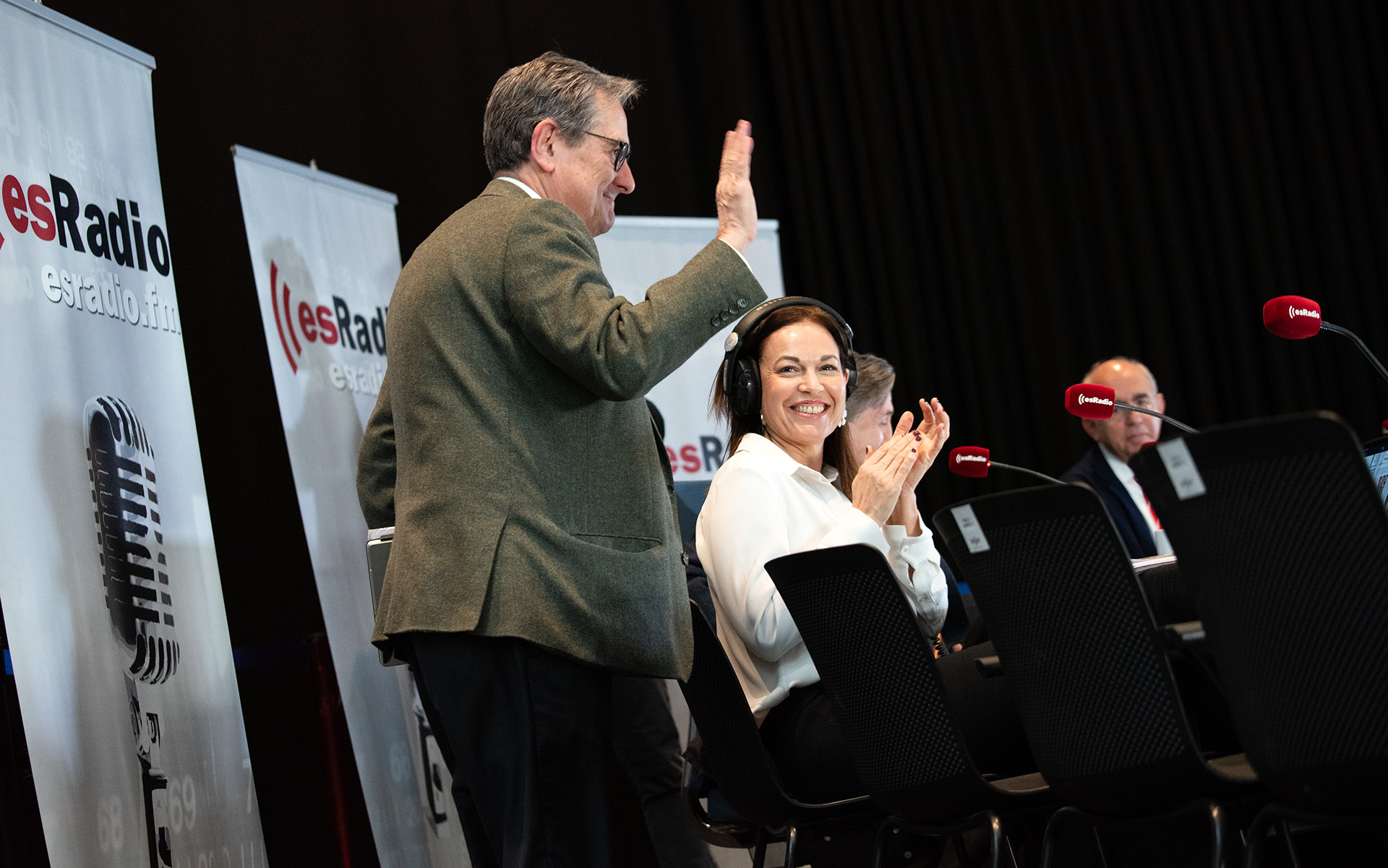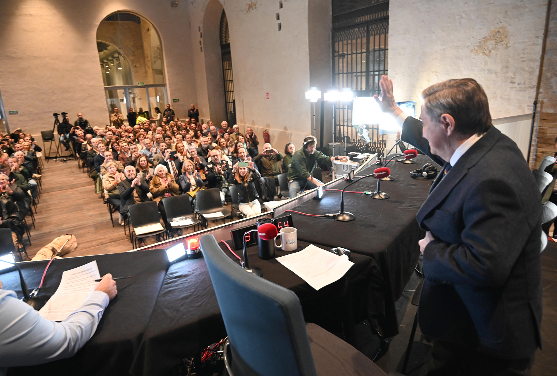 Federico Jiménez Losantos es ovacionado al comenzar su programa especial desde la Real Fábrica de Artillería de Sevilla.