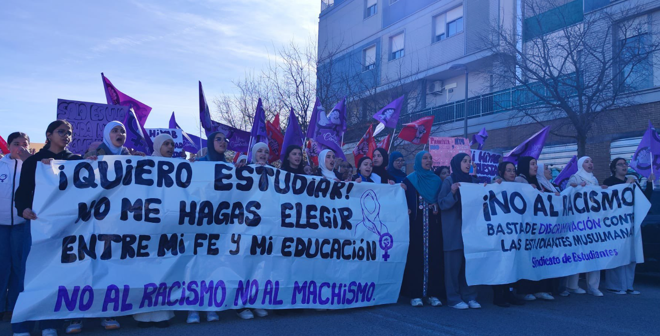 En un discurso escuchado en la manifestación, una estudiante española ha criticado que "mientras a las estudiantes musulmanas se les impide llevar el hiyab en clase, los alumnos católicos pueden portar cruces y estampas religiosas" y defiende la causa diciendo que "yo no llevo hiyab, pero esta lucha también es de todas las que defendemos unas aulas libres de islamofobia, racismo y machismo".