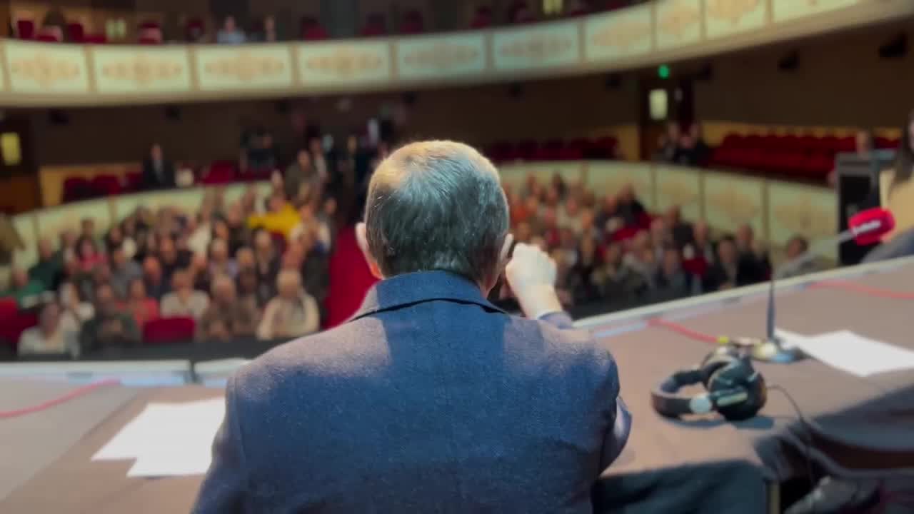 La salida de Federico Jiménez Losantos ante el teatro Principal de Orense