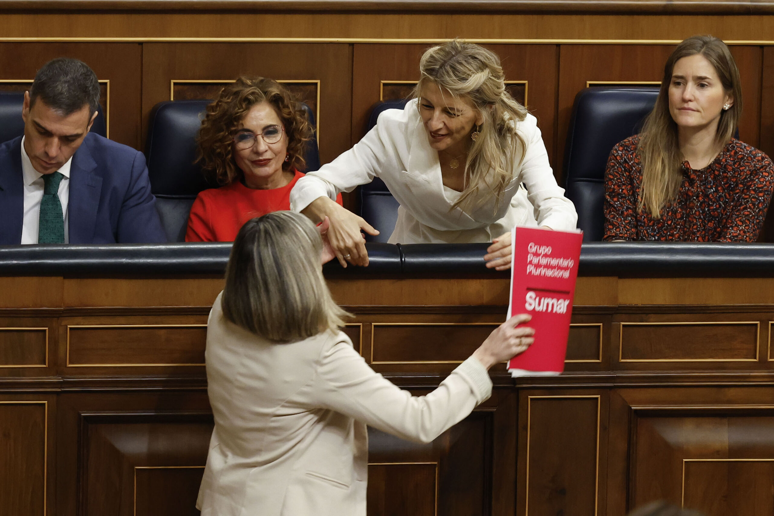 Los morados alertan del peligro que supone el plan de rearme y el cambio de rumbo de Sánchez desde que llegó a La Moncloa: "Qué vergüenza en lo que usted se ha convertido", ha concluido su intervención Belarra. Una alarma que también ha hecho suya la portavoz de Bildu, Mertxe Aizpurua que ha exigido no aceptar sin debate previo "las imposiciones de la UE".