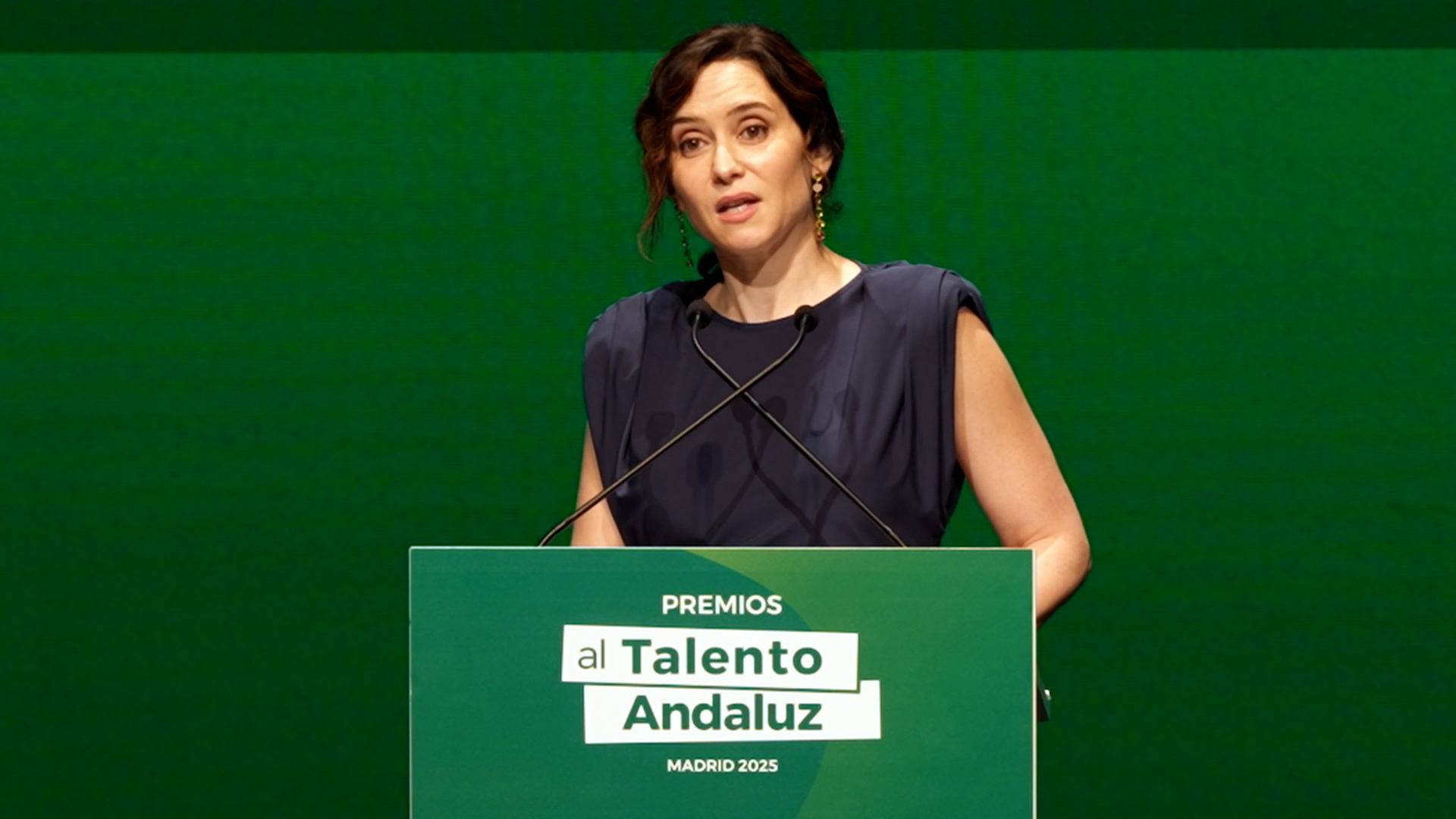 La presidenta de la Comunidad de Madrid, Isabel Díaz Ayuso, ha reafirmado este lunes en los Teatros del Canal el papel clave de Madrid y Andalucía como dos de las regiones más prósperas y visitadas de España, durante su intervención en la ceremonia de los Premios Talento Andaluz 2025, organizados por la Junta de Andalucía.