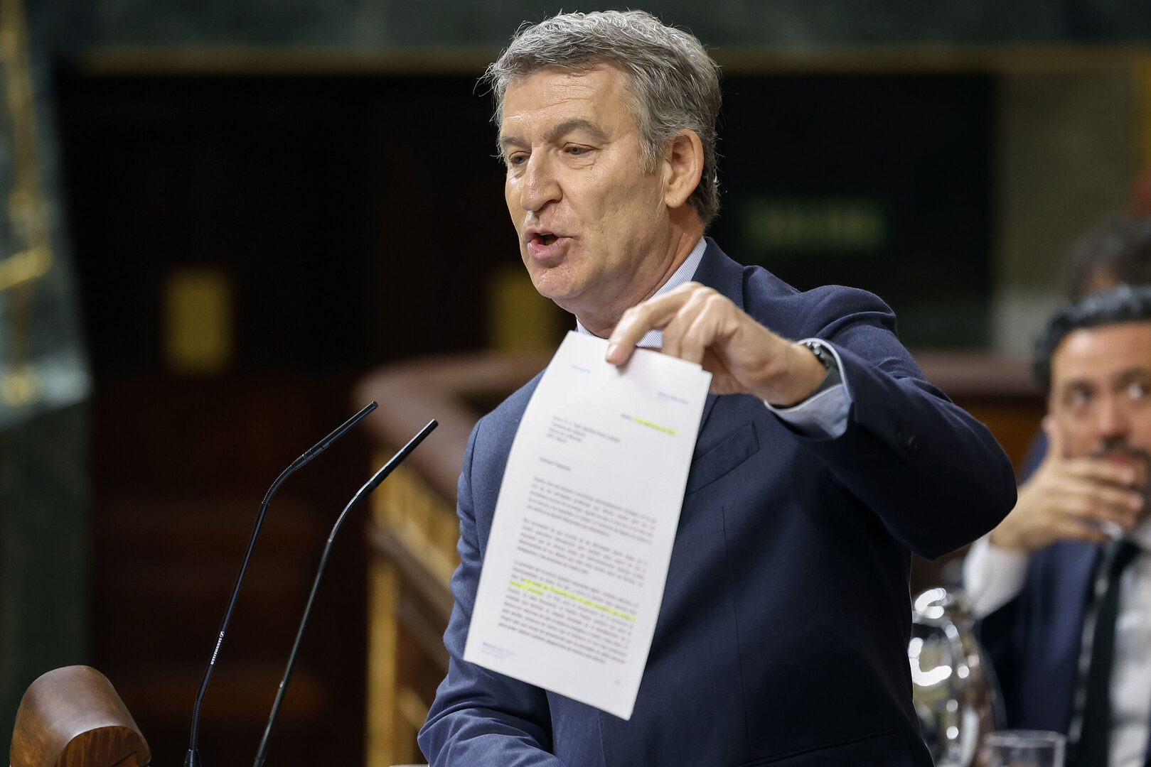 "La cuarta economía del euro no va a tolerar que lo ocurrido el 28 de abril se salde sin dimisiones", ha advertido Alberto Núñez Feijóo, en un discurso duro, trufado por momentos de ironías ante la comparecencia protagonizada por el presidente del Ejecutivo, que por momentos llegó a alabar las bondades del apagón. "El único al que benefició el apagón fue a su hermano", le ha respondido el líder del PP recordando que la caída del sistema eléctrico se produjo pocas horas después de la imputación de David Sánchez por corrupción.