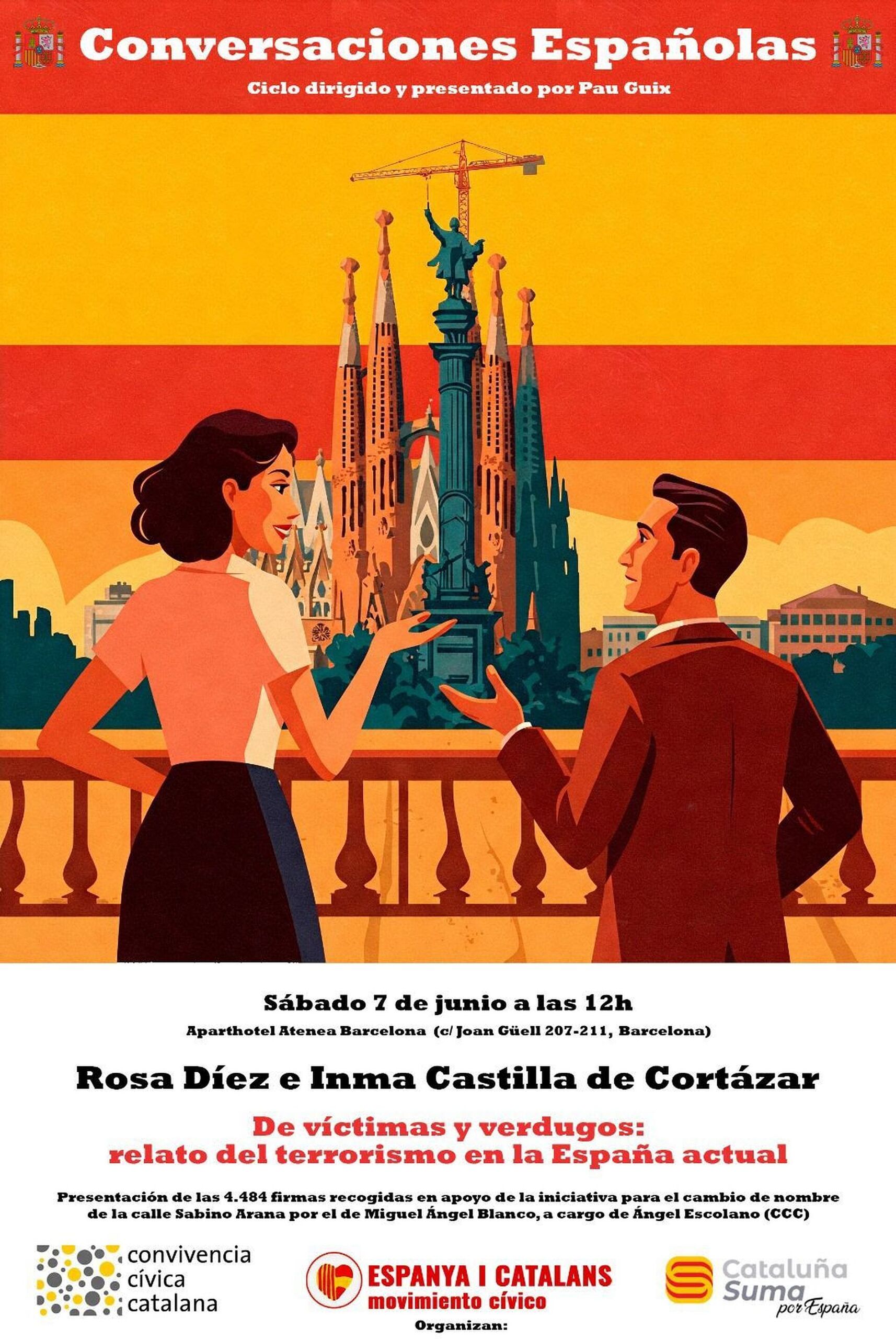 Cataluña Suma, Convivencia Cívica Catalana y el Movimiento Cívico d’Espanya i Catalans son las tres entidades detrás de "Conversaciones Españolas", una auténtica provocación en la Cataluña de Salvador Illa a pesar de la supuesta "normalización" de la que presume el presidente de la Generalidad. Los estudiantes de "S'ha Acabat" siguen siendo insultados y amenazados cada vez que organizan un acto, pero ahora con más intensidad. Y titular "Conversaciones Españolas" un ciclo de conferencias se considera de ultraderecha. Como el uso de la bandera nacional como fondo de la estatua de Colón y la Sagrada Familia.
