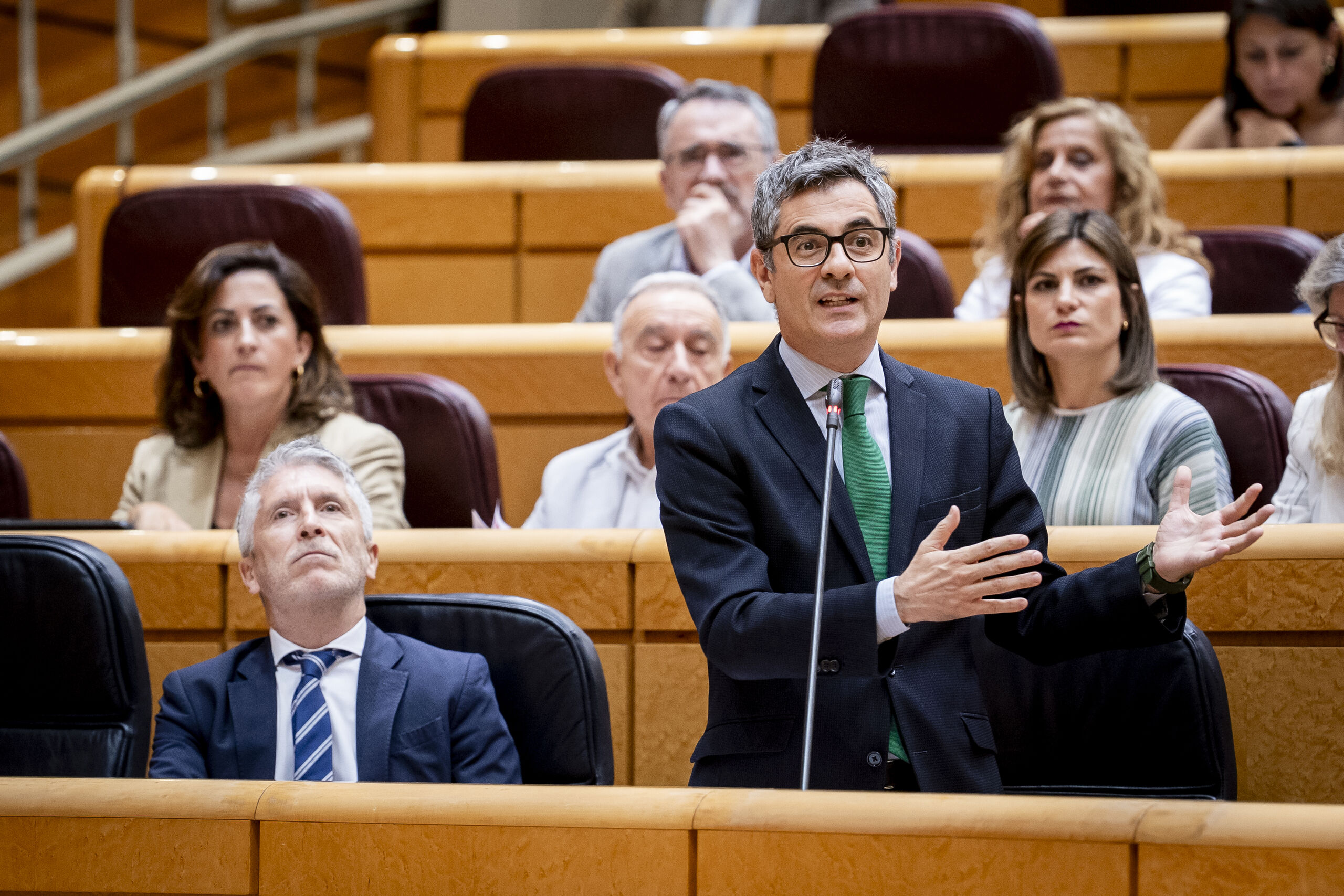 El Partido Popular ha centrado la sesión de control al Gobierno en el Senado en el caso del fiscal general del Estado, Álvaro García Ortiz, procesado por el Tribunal Supremo. Uno a uno, todos los senadores, han comenzado sus intervenciones con la misma fórmula: "Son las 16.20 y el fiscal general del Estado todavía no ha dimitido"; "son las 16.30 y el fiscal general del Estado todavía no ha dimitido", repetían al interpelar a Yolanda Díaz, Félix Bolaños o Fernando Grande-Marlaska.