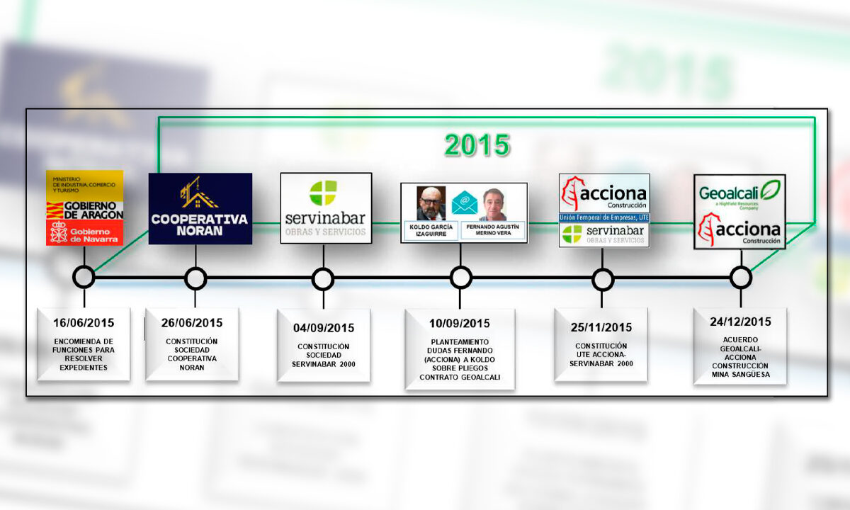 La licencia recayó en la empresa Geoalcali, con capital australiano e inversores chinos. Sin embargo, en diciembre de 2015, los gestores de la mina adjudicaron a Acciona la obra civil de la explotación por 56,9 millones de euros, y los agentes se muestran convencidos de que Servinabar y Noran —la misteriosa cooperativa inmobiliaria creada por el fundador de la primera, Antxón Alonso, y Koldo García— estarían "vinculadas" a dicha adjudicación y controladas por Santos Cerdán.