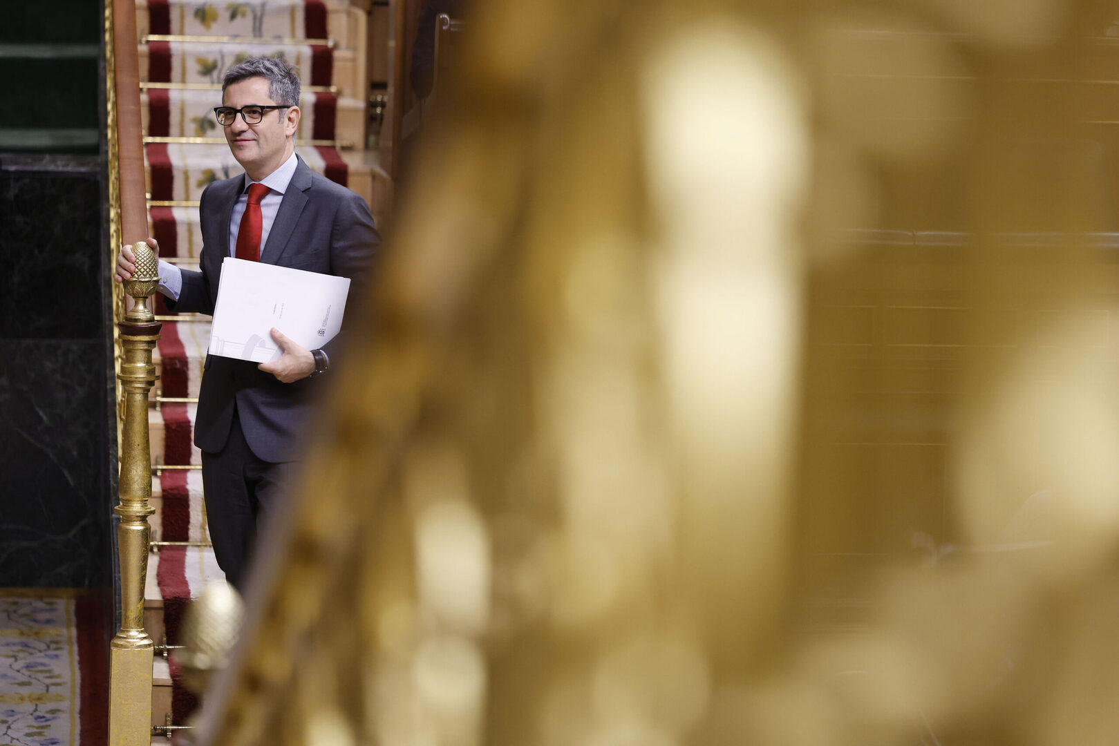 En Moncloa justifican esta vaguedad asegurando que están "agotados" del magistrado que instruye la causa sobre Begoña Gómez y que, en el caso de Bolaños, le afecta por la contratación de su asesora. Fuentes del Gobierno califican el auto como "un disparate" y sostienen que "está lleno de errores, erratas e imprecisiones". El ministro de Presidencia y Justicia, Félix Bolaños, reiteraba esa idea al llegar al Congreso. "Esa tranquilidad absoluta se ha visto reafirmado cuando he visto la exposición razonada, contiene errores de bulto fácilmente comprobables mediante la propia declaración que es pública y se filtró", afirmaba a su llegada al Congreso.