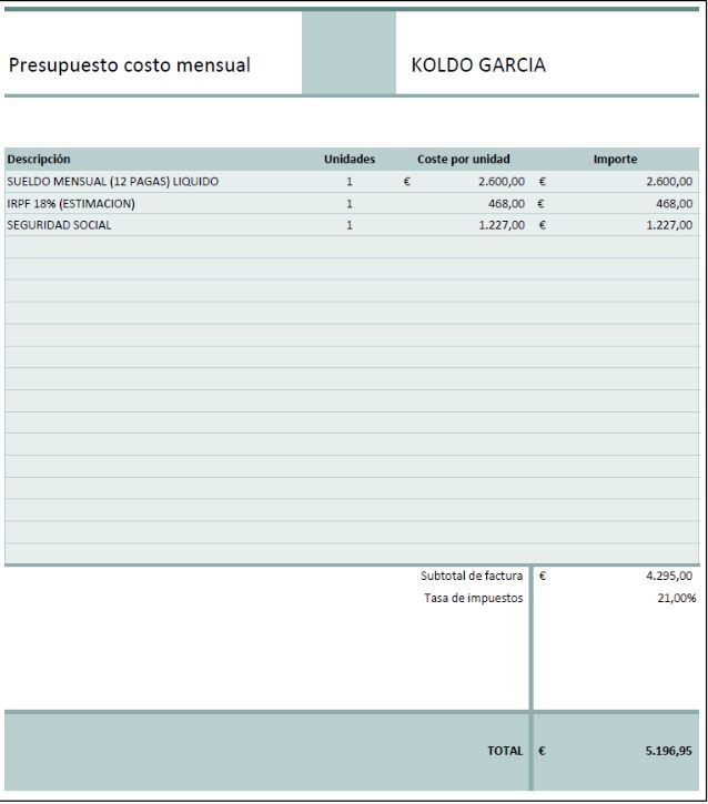"El 1 de diciembre de 2022 se intercambiaron una serie de mensajes en los que Juan Carlos ETERO le trasladó a KOLDO un presupuesto de prestación de servicios y más tarde otro con los gastos asociados de KOLDO como trabajador, departiendo ambos las cuantías que debían figurar para, en efecto, recibir KOLDO un salario neto de 2.600 euros mensuales. Ese mismo día Juan Carlos ETERO le mandó a PATRICIA la nómina de KOLDO.