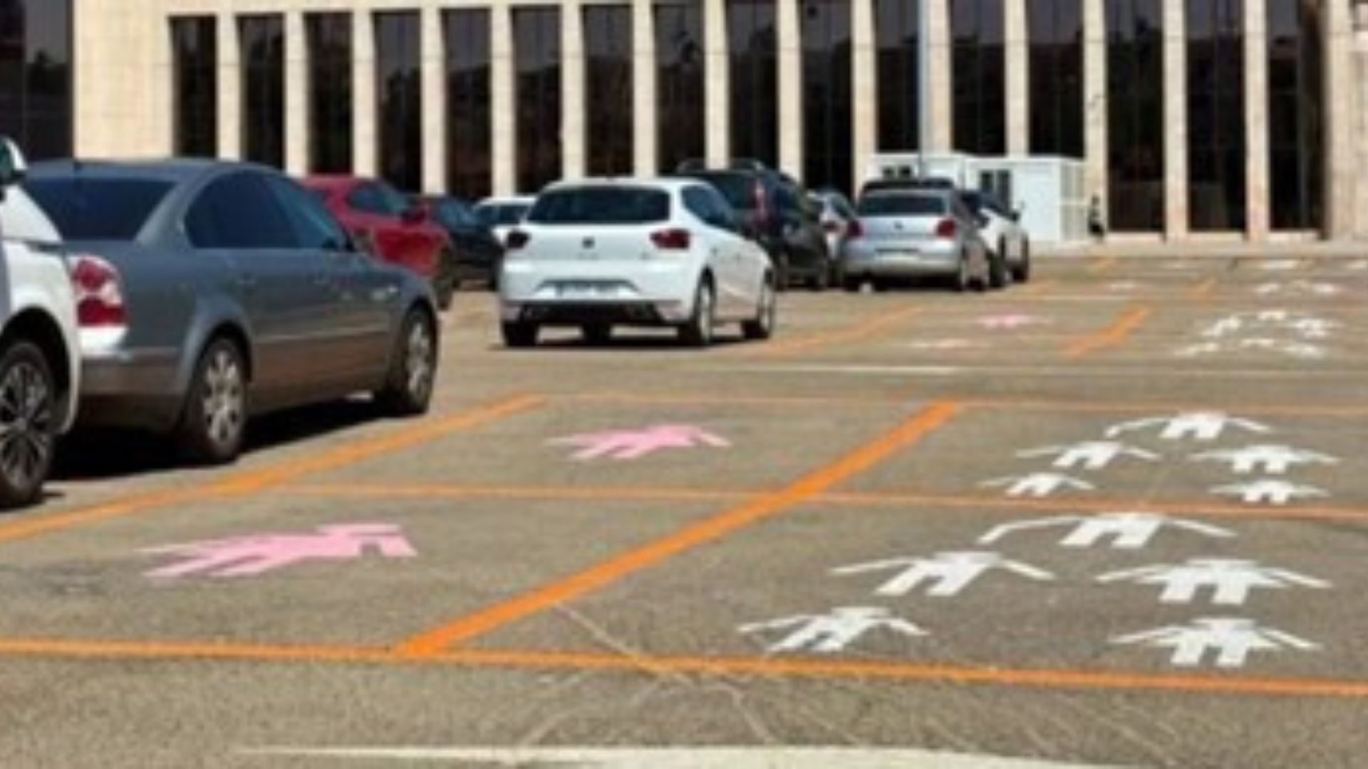 El equipo de gobierno del Ayuntamiento de #LeónEsp se niega a explicar los pictogramas pintados en las plazas de aparcamiento de la explanada de los Pendones.