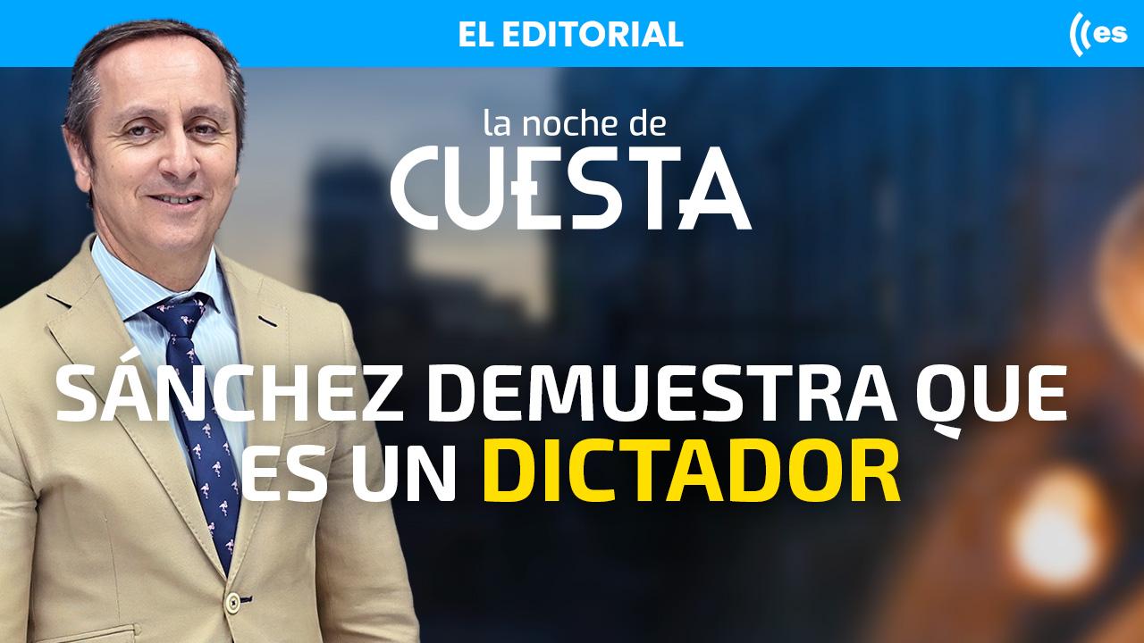 El presentador de La Noche de Cuesta de esRadio, Carlos Cuesta, ha dirigido su editorial de este miércoles a advertir a los españoles de las actitudes dictatoriales del presidente del Gobierno, Pedro Sánchez, que ha mandado a su portavoz en el Congreso, Patxi López, a apoyarle en su cruzada contra la independencia judicial aseverando que los magistrados "no son seres de luz".