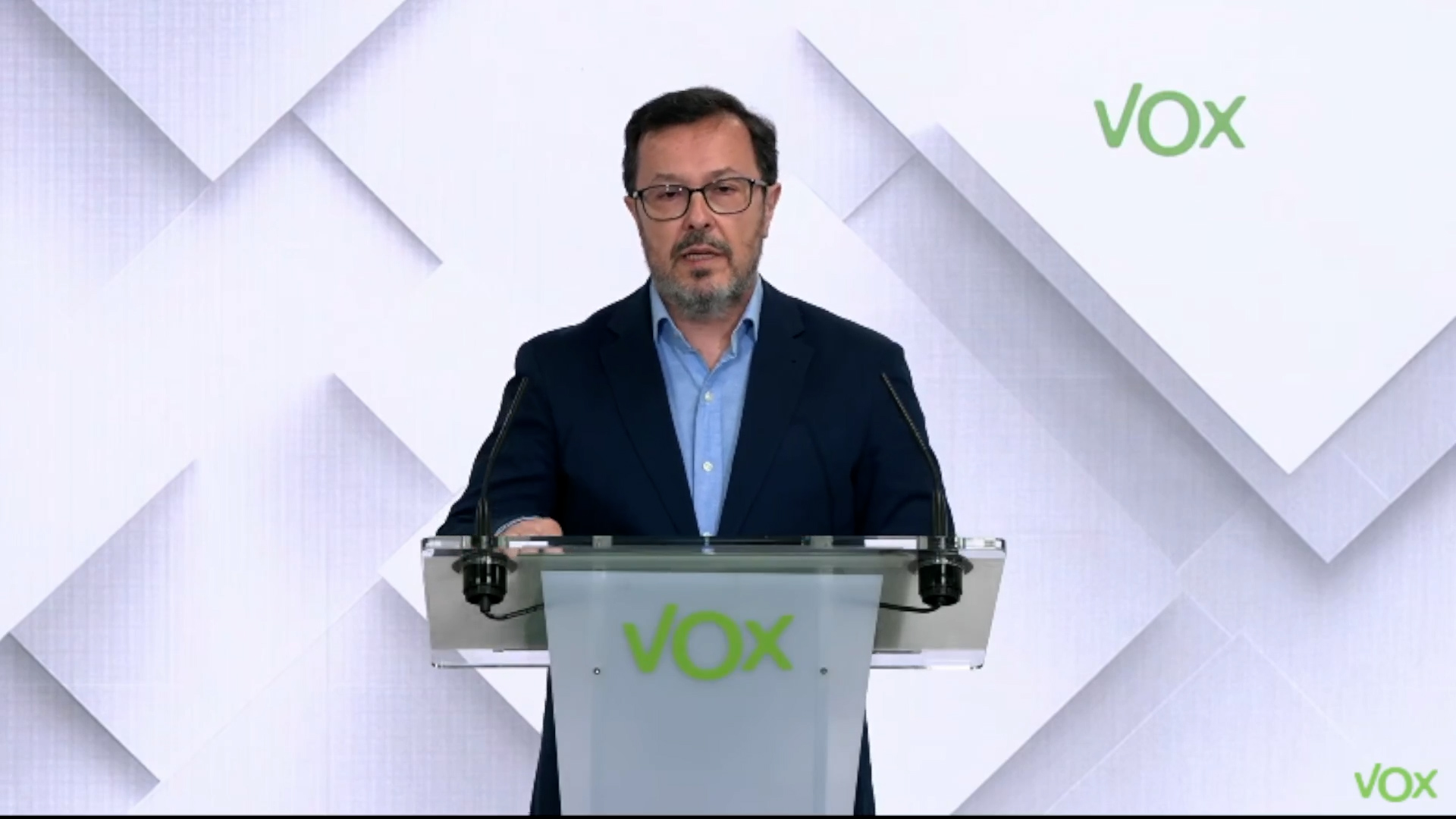 En esta contundente rueda de prensa, el portavoz nacional de Vox, José Antonio Fúster, señala directamente al presidente del Gobierno y a su Ejecutivo, al que tacha de "mafia criminal" apoyada por los "proetarras de Bildu".