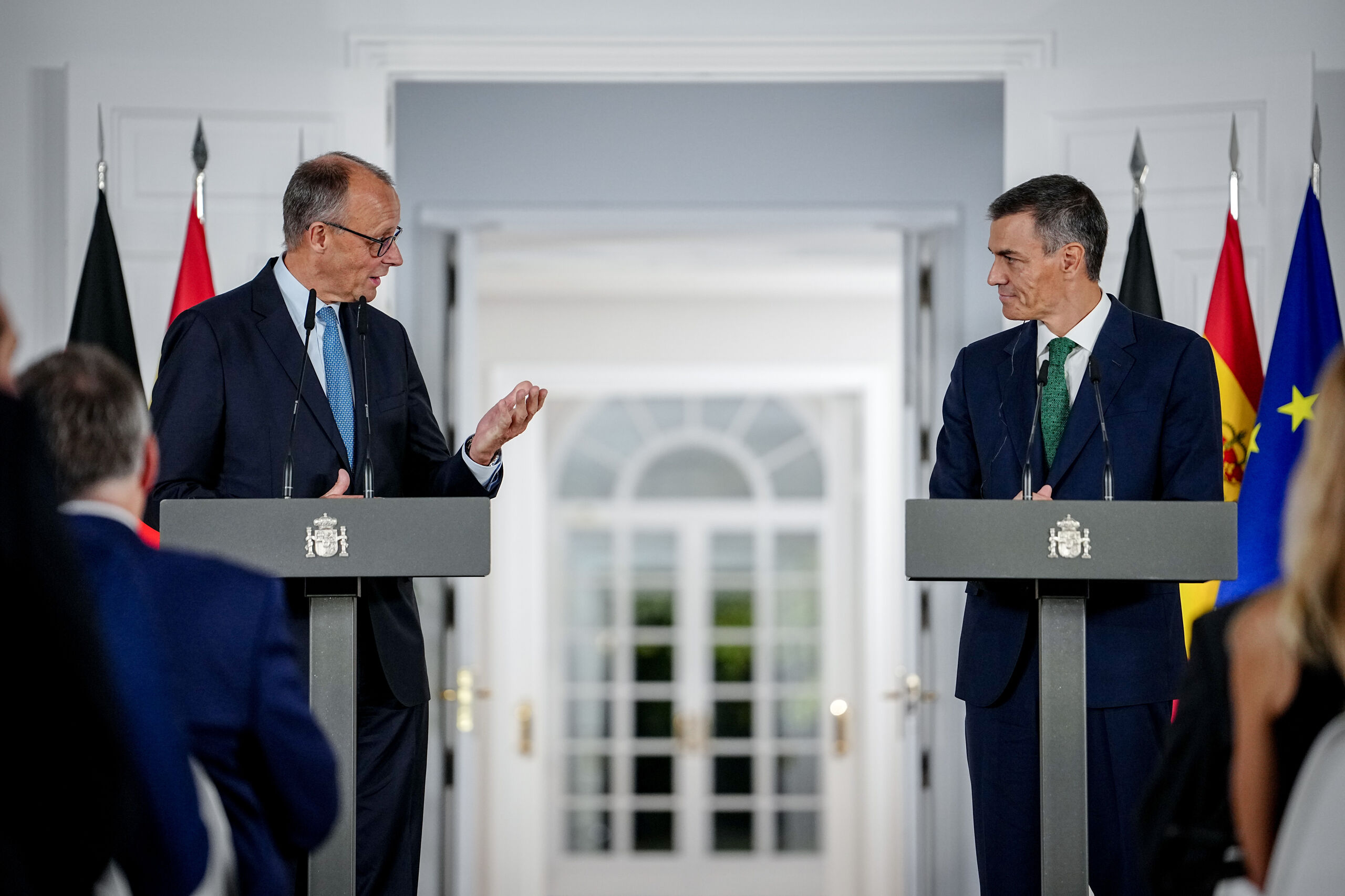 "Somos amigos del pueblo de Israel", ha afirmado Pedro Sánchez, asegurando coincidir en "objetivos" con Alemania. Pero el canciller Friedrich Merz ha sido más claro: "Esta guerra cesará cuando Hamás libere a los rehenes y deponga las armas", aunque ha calificado de "desproporcionada" la respuesta del Gobierno de Benjamín Netanyahu.