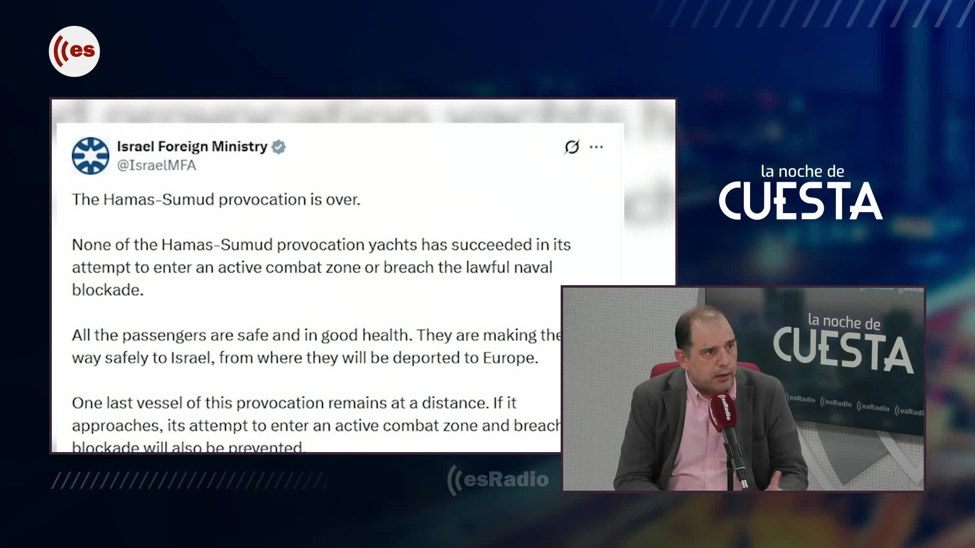 En la última tertulia de La Noche de Cuesta, de esRadio, Carlos Cuesta, Sandra León, Carmelo Jordá y Fran Carrillo han tratado algunos de los asuntos más polémicos de la actualidad nacional. Entre ellos, los sobres del PSOE localizados por la UCO para Ábalos y las novedades de la flotilla de Gazal.