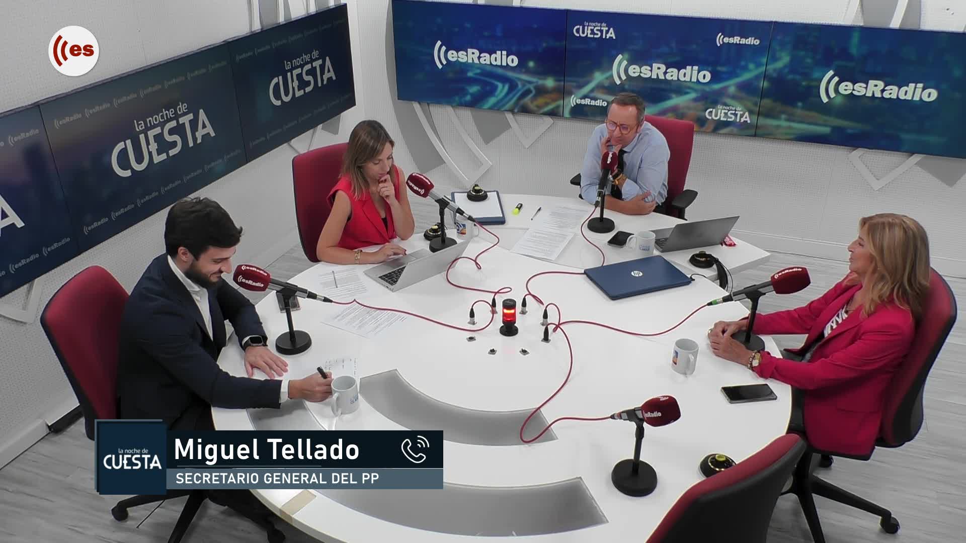 El secretario general del Partido Popular, Miguel Tellado, ha cargado contra el presidente del Gobierno, Pedro Sánchez, en La noche de Cuesta, de esRadio. El secretario del PP ha asegurado que Sánchez está "acorralado por la justicia" y le ha acusado de liderar "una organización criminal" desde la sede de Ferraz.