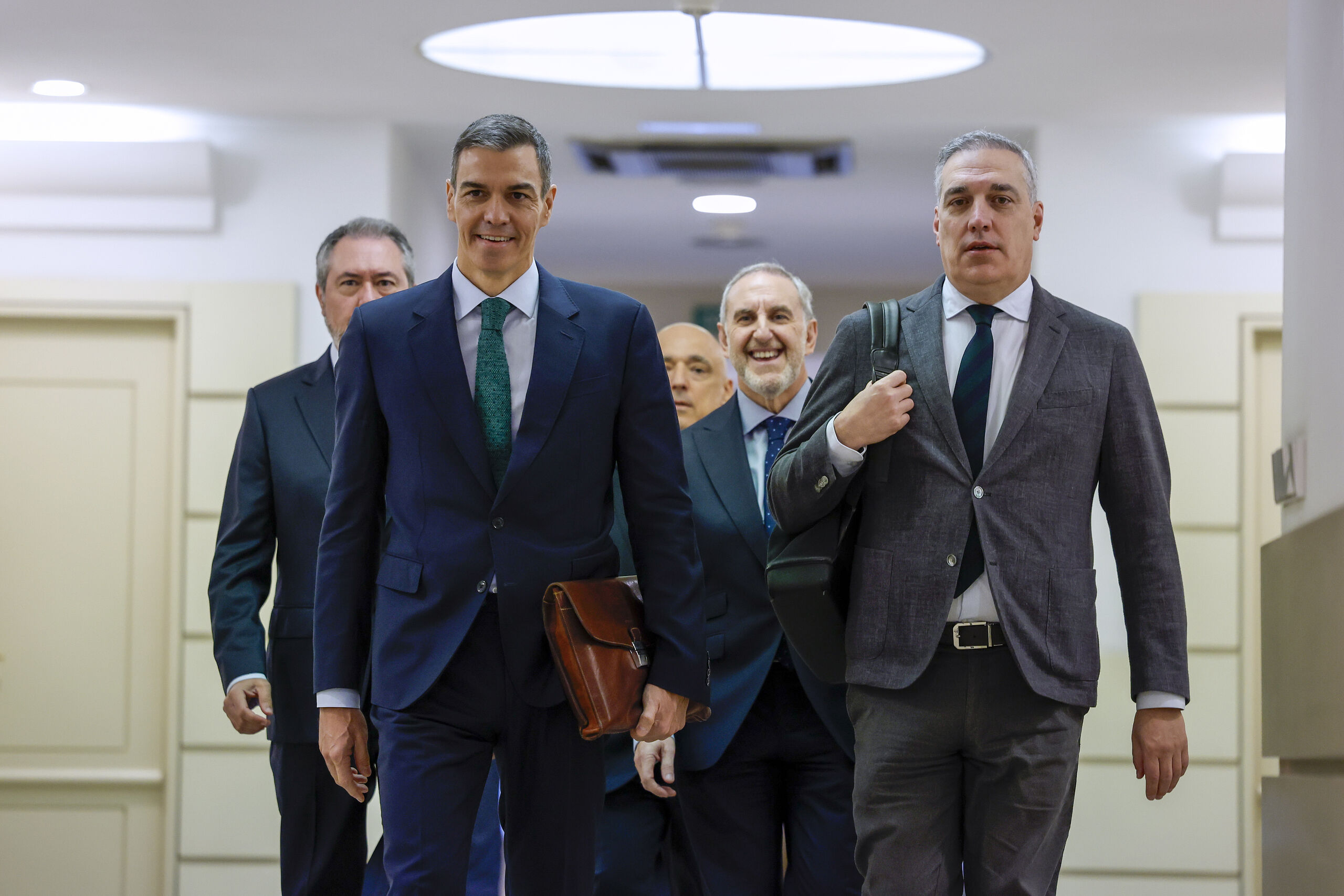 El presidente acude a la Cámara Alta rodeado de su personal de confianza. A la cabeza, el ministro de Justicia, Félix Bolaños, abogado de profesión, y que esta semana ha sido protagonista por la conocida como 'Ley Bolaños', aprobada en Consejo de Ministros, y que pretende asaltar la Justicia precisamente cuando la corrupción acorrala al PSOE. La norma, de momento, no cuenta con apoyos parlamentarios para prosperar.