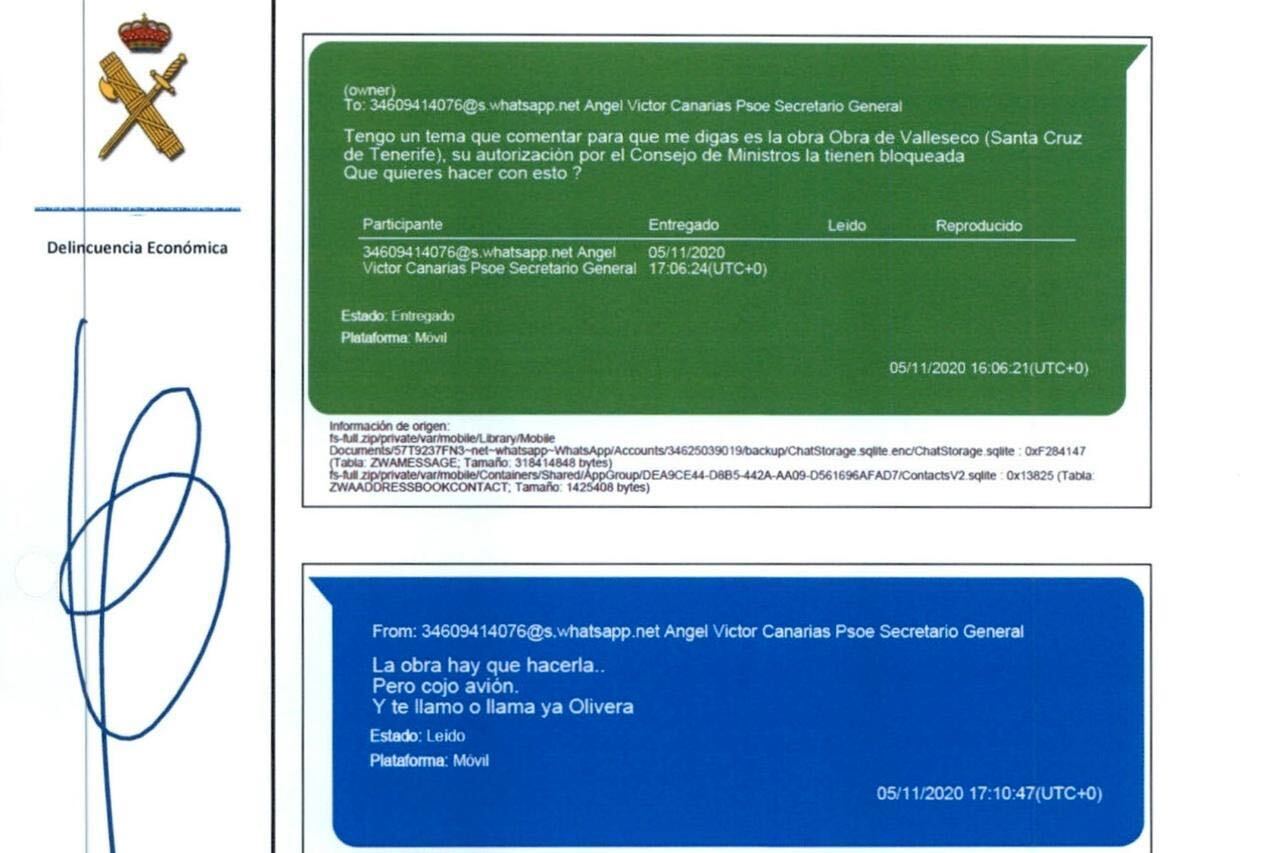 Pero hubo más. En un momento dado, en noviembre de 2020, Koldo le dijo lo siguiente a Torres: "Tengo un tema que comentar para que me digas, es la obra Obra de Valleseco (Santa Cruz de Tenerife), su autorización por el Consejo de Ministros la tienen bloqueada. ¿Qué quieres hacer con esto?". La respuesta de Torres fue rápida: "La obra hay que hacerla. Pero cojo avión. Y te llamo o llama ya Olivera".