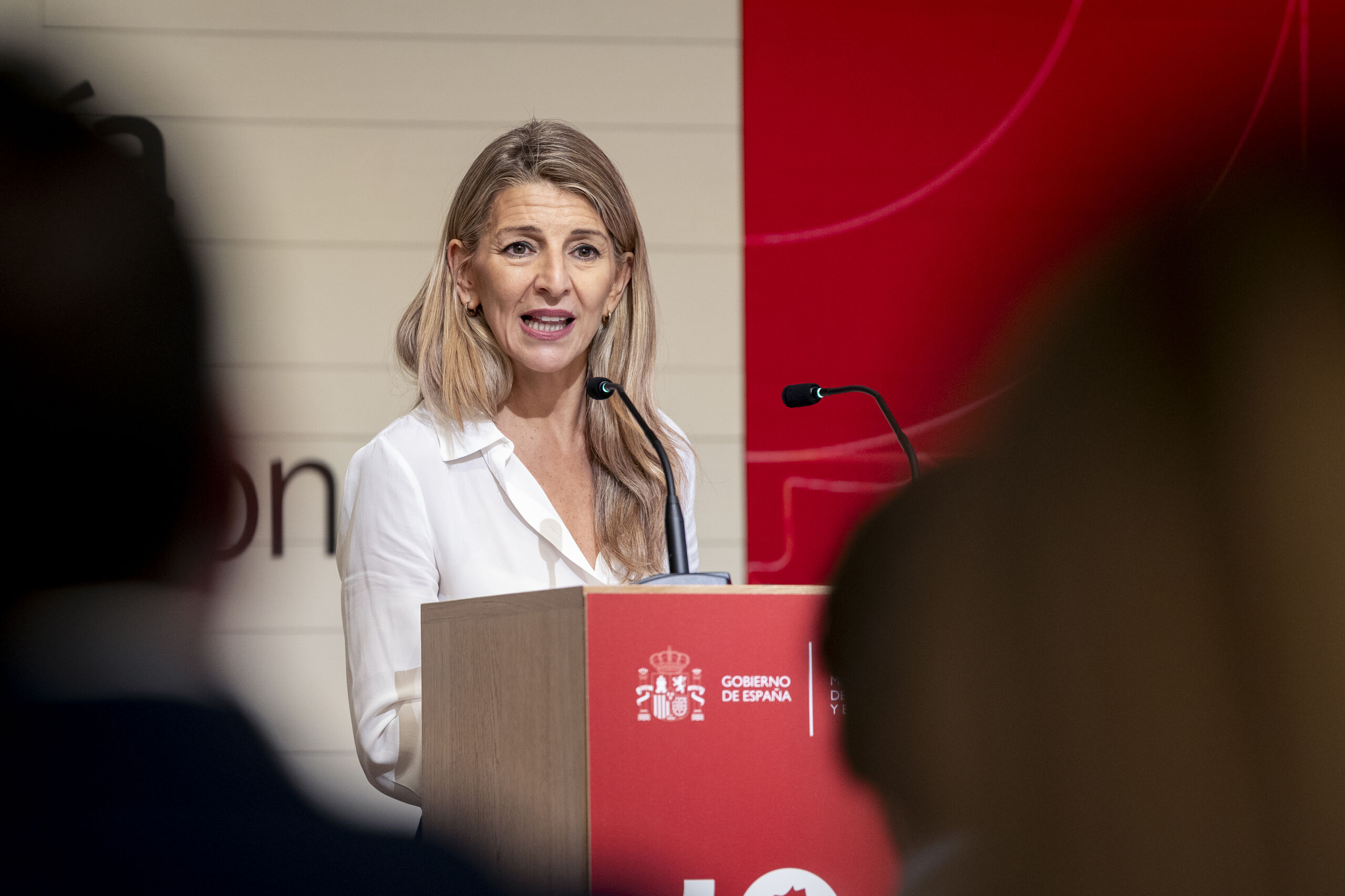 Yolanda Díaz ha hablado este lunes sobre la condena del Tribunal Supremo contra el fiscal general del Estado, que ha renunciado este lunes a su cargo, y lo ha hecho lanzando otro grave ataque contra la independencia judicial.