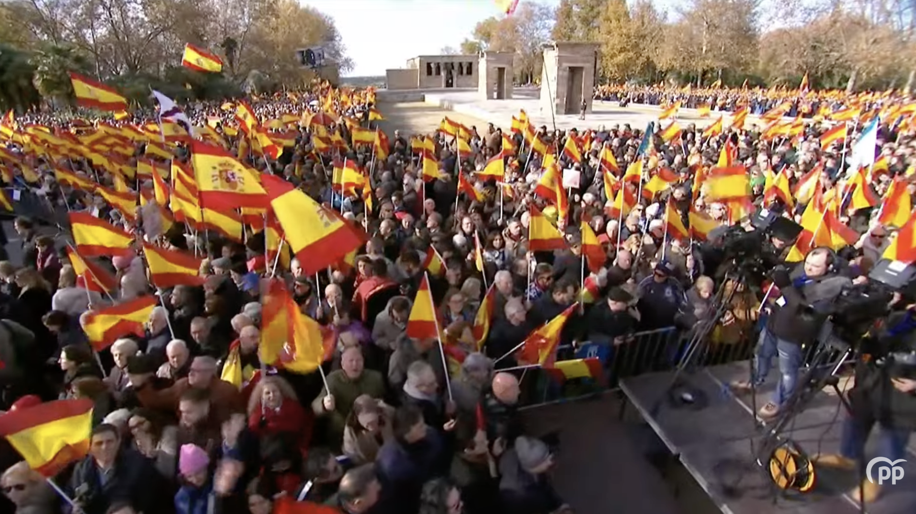 Feijóo, Ayuso y Almeida intervienen en la concentración "Efectivamente: ¿Mafia o democracia?"