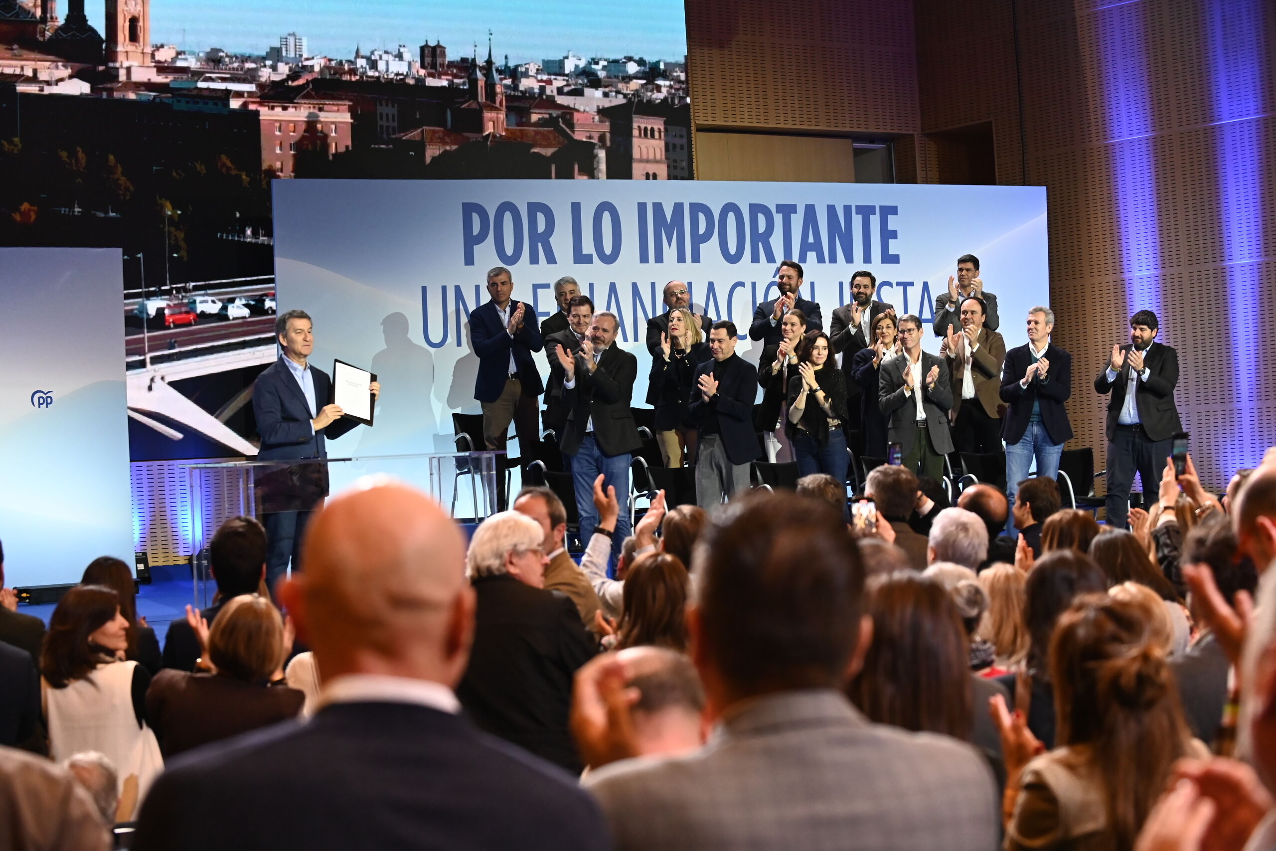 La reunión en la capital aragonesa ha servido para ratificar la 'Declaración de Zaragoza', un documento donde el PP fija una postura común frente a la reforma del modelo de financiación autonómica que Sánchez ha pactado de forma bilateral con el separatismo. Feijóo ha criticado la hipocresía del presidente del Gobierno, que pretende que el principal partido de la oposición rescate las instituciones que él mismo debilita. "No se puede desguazar el Estado un domingo y el lunes pedirle al PP que te ayude a defenderlo", ha sentenciado Feijóo.