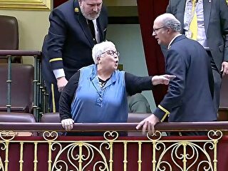 Durante el pleno, la activista gritó "no tenéis vergüenza" después de que PP, Vox y Junts votaran en contra del texto, que incluía medidas como la revalorización de las pensiones y la prórroga de la suspensión de desahucios y de los cortes de suministros básicos para personas vulnerables.