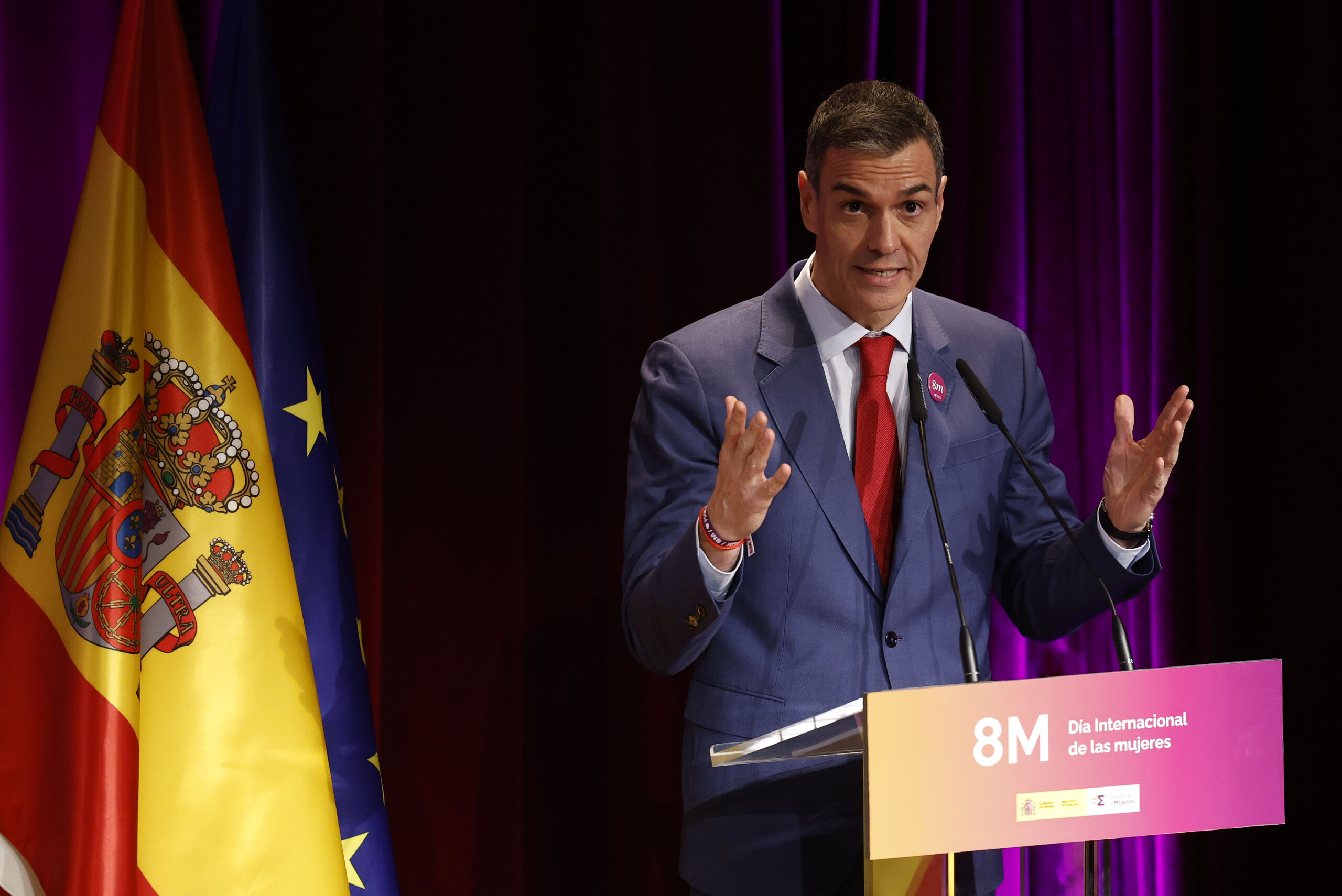 Tras fijar en apenas diez minutos la posición de España sobre la guerra en Oriente Medio y responder, sin citarle expresamente, a las amenazas del presidente de Estados Unidos, Donald Trump, Pedro Sánchez se ha trasladado al acto institucional por el 8M, donde fue ovacionado por las asistentes al son del 'no a la guerra'. El jefe del Ejecutivo, encargado de clausurar el evento, ha profundizado en su rechazo al ataque de EEUU e Israel al sostener que las mujeres "nunca deben ser coartada para lanzar guerras, ni argumentos para bombardear otro país".