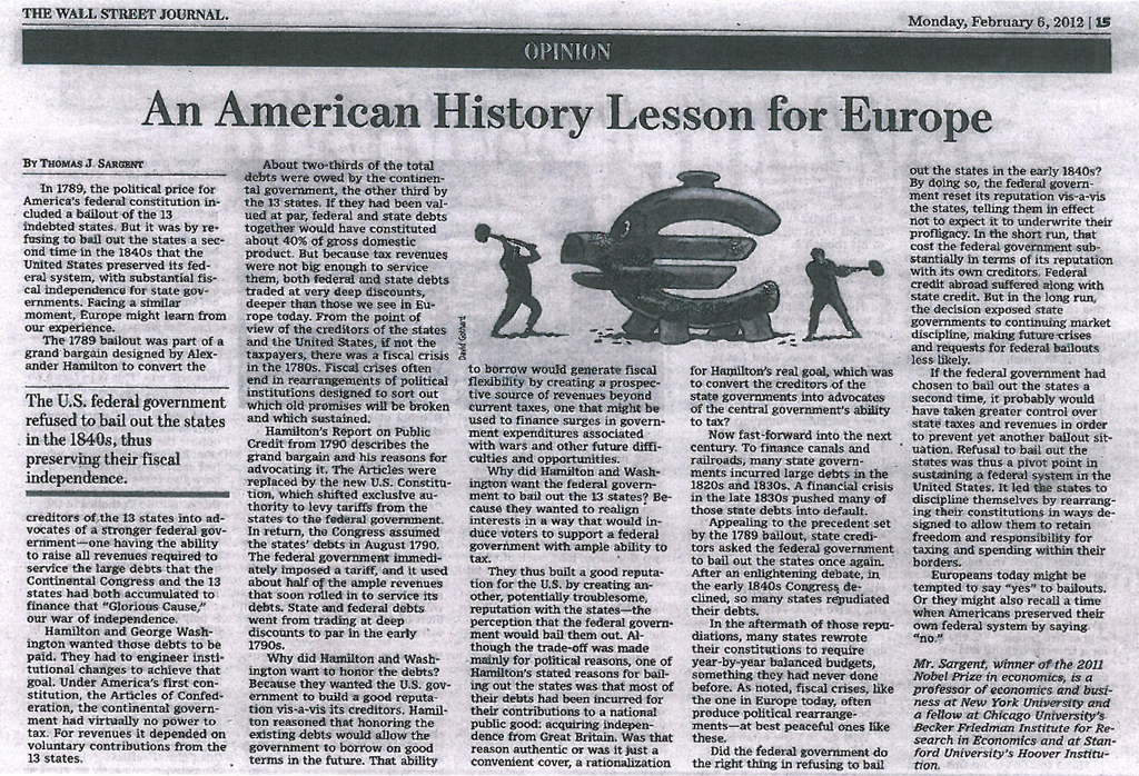 Nota 1: "Véase el artículo de Thomas J. Sargent en The Wall Street Journal el 6/2/2012". Click aquí